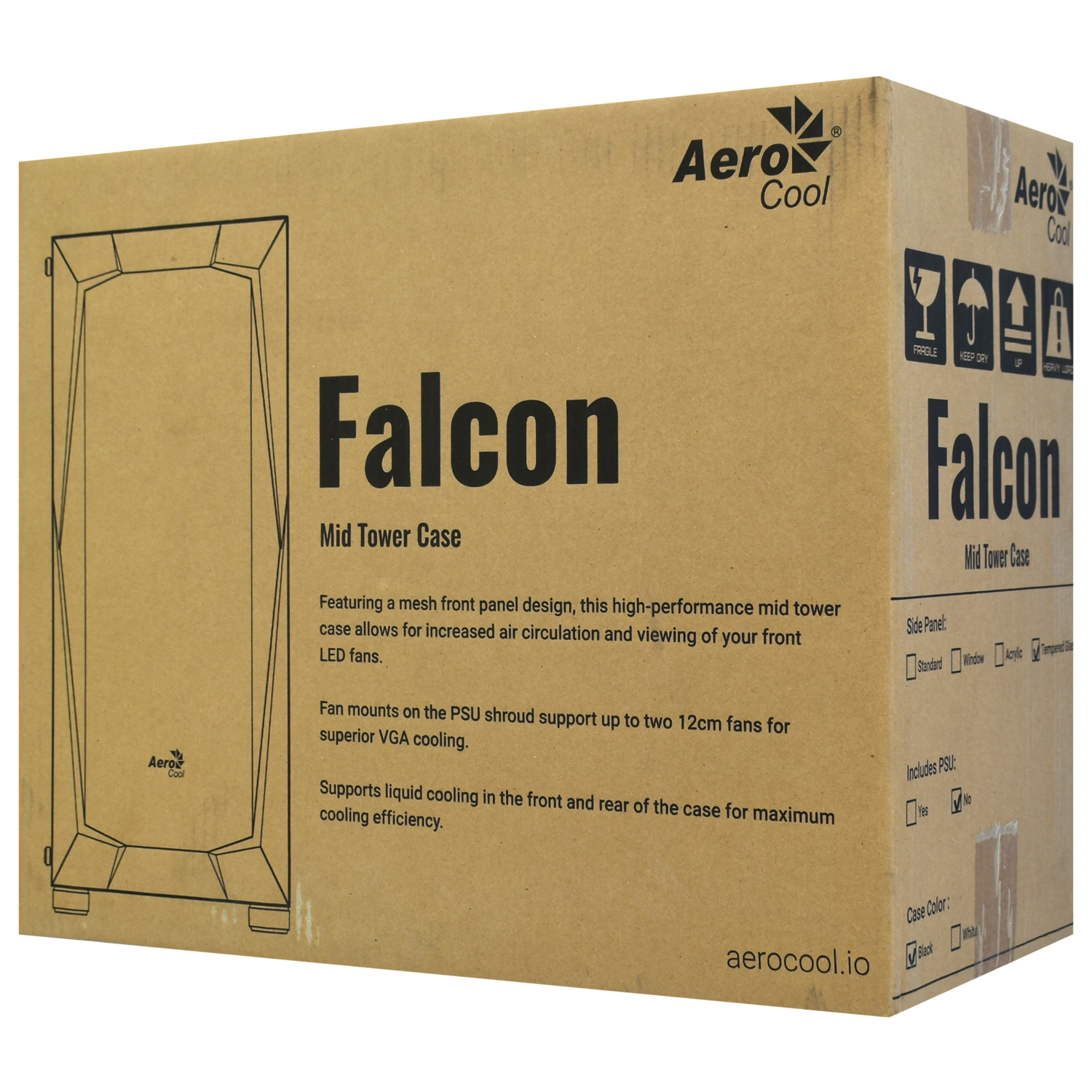 Корпус ATX midi tower AeroCool, Falcon-G-BK-v1, (без БП), black Case