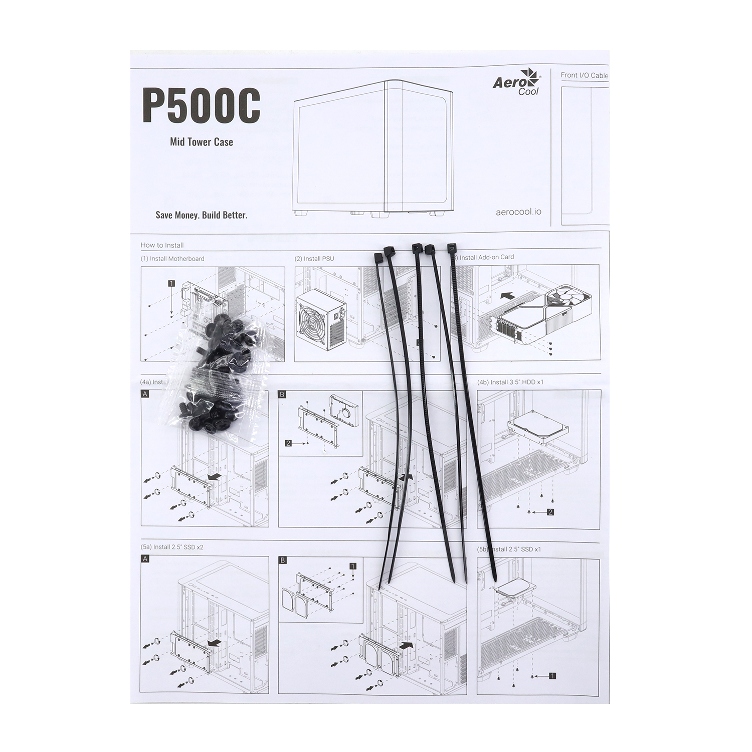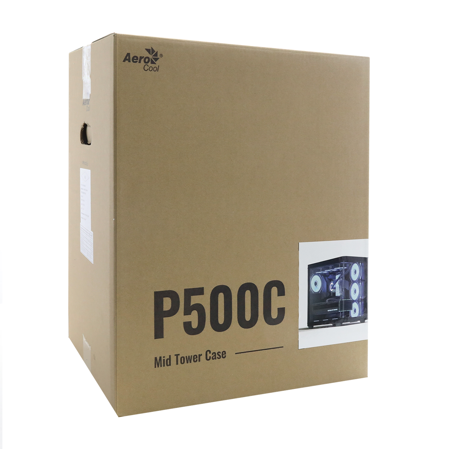 Корпус ATX midi tower AeroCool, P500C-G-BK-V1, (без БП), black Case