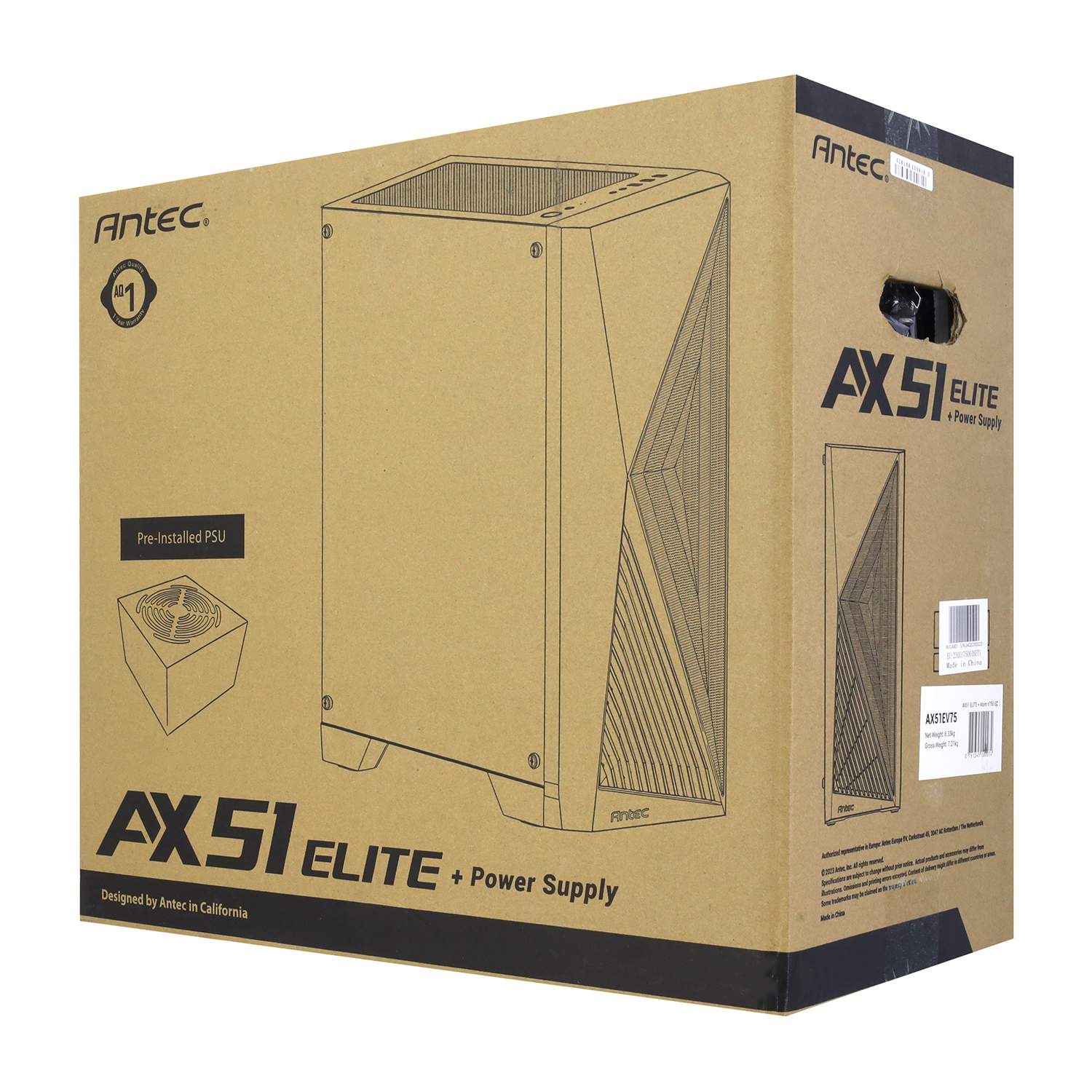 Корпус ATX midi tower Antec, AX51, (AX51EV75), черный Case AX51EV75, 1*120 ARGB+3*120 ARGB fan(Atom 750W), black