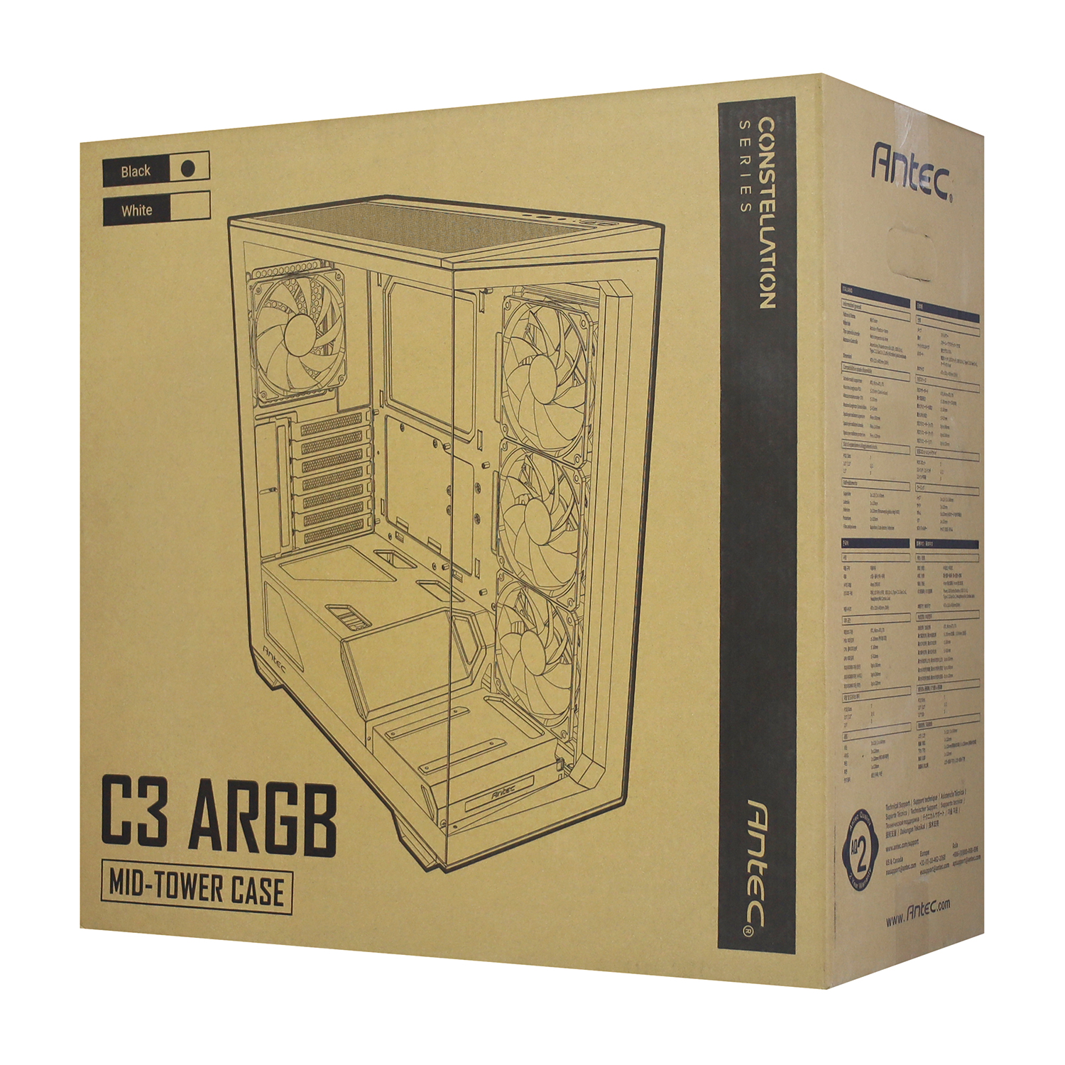 Корпус ATX midi tower Antec, C3 ARGB, [0-761345-10029-8], черный Case 4*120 ARGB+ ARGB fan hub, (Без БП), black