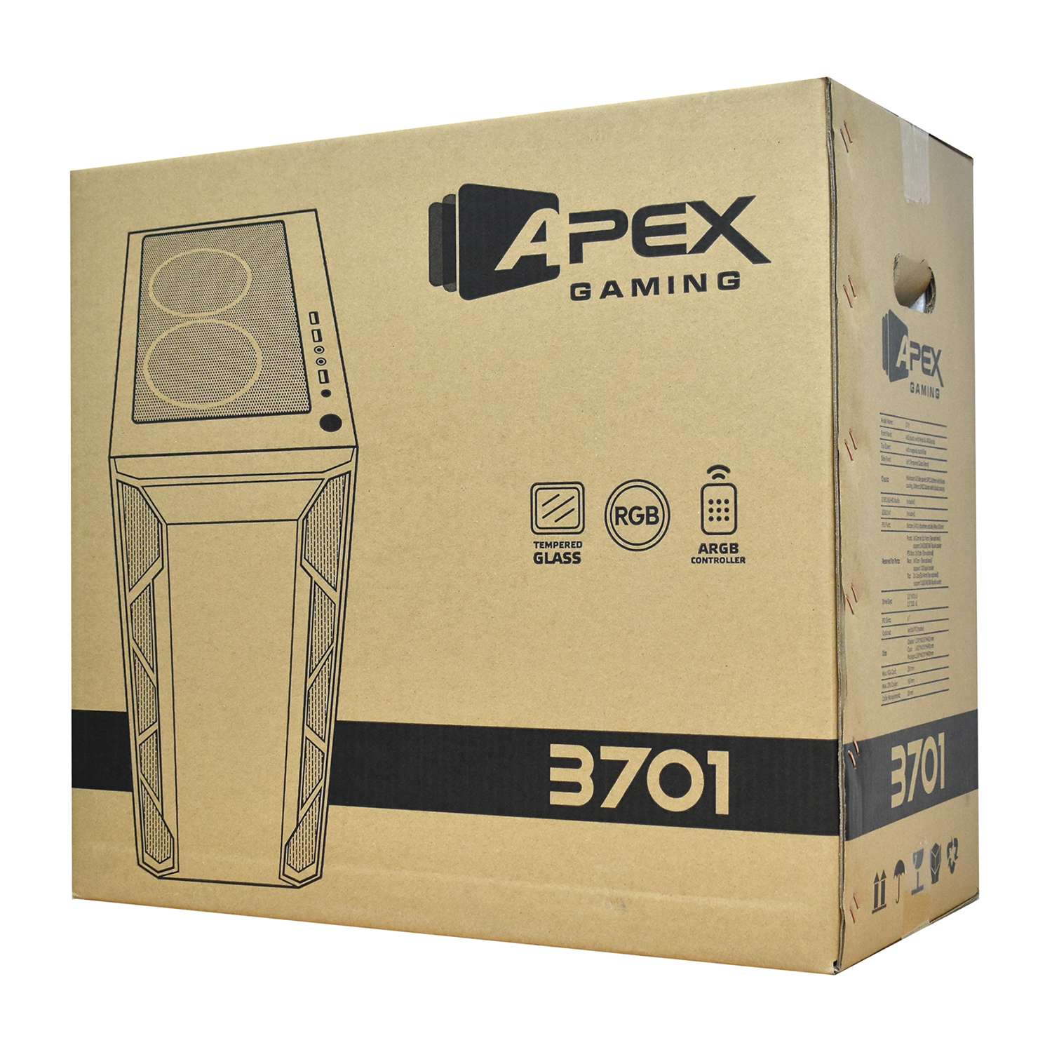Case ATX midi tower APEX, 3701, 1*120mm ARGB + 3*120mm black + ARGB fan hub + remote contr. (без БП)