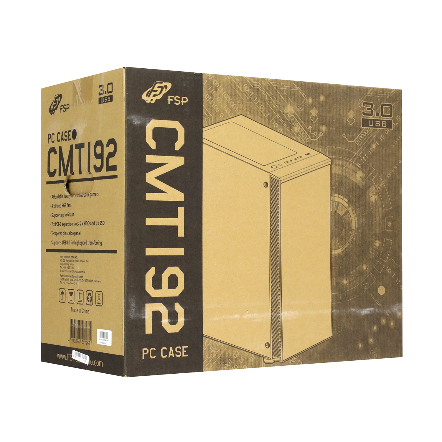 Case ATX midi tower FSP CMT192 , (без БП), BLACK