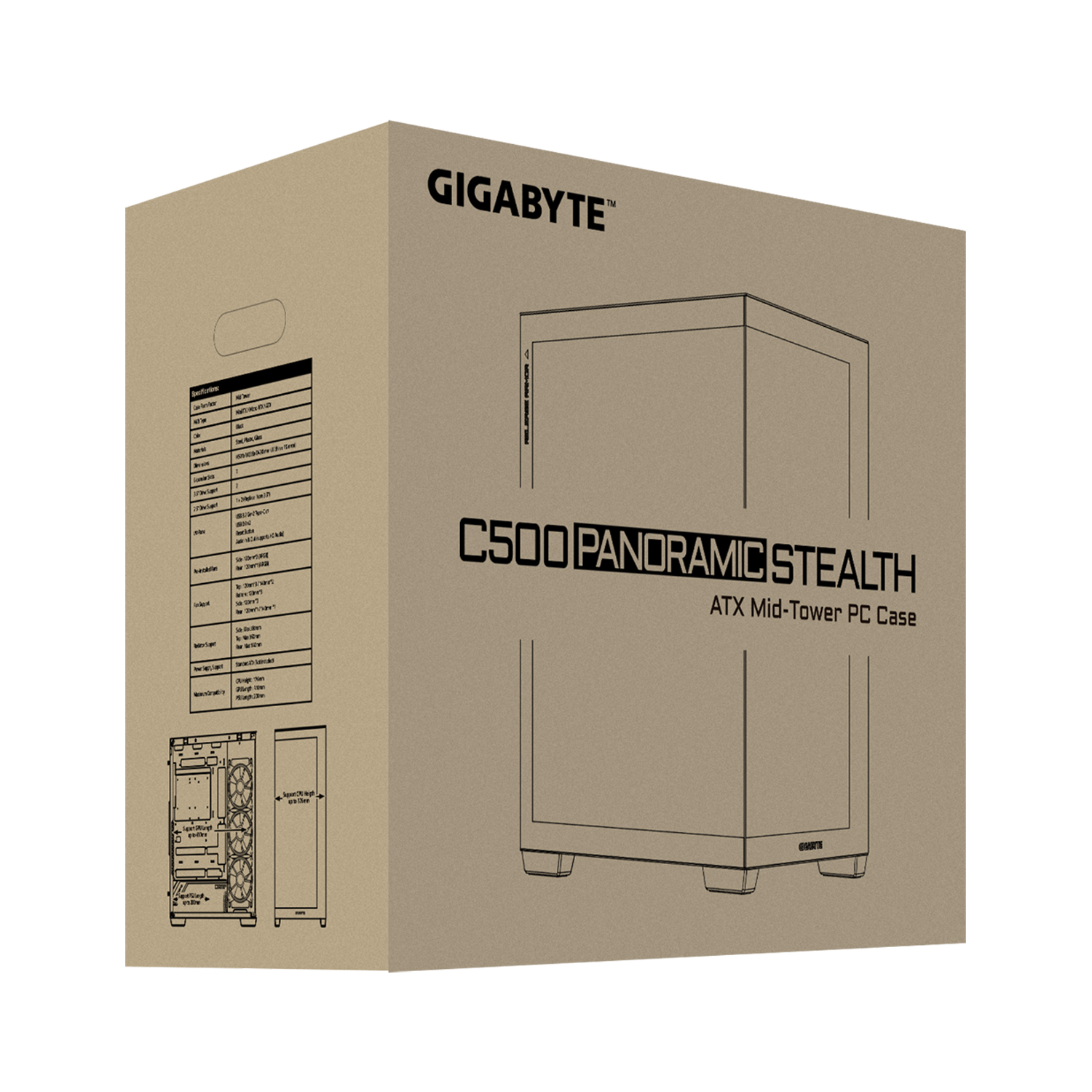 Корпус ATX midi tower Gigabyte C500 Panoramic Stealth, GB-C500P ST, (без БП) Case black