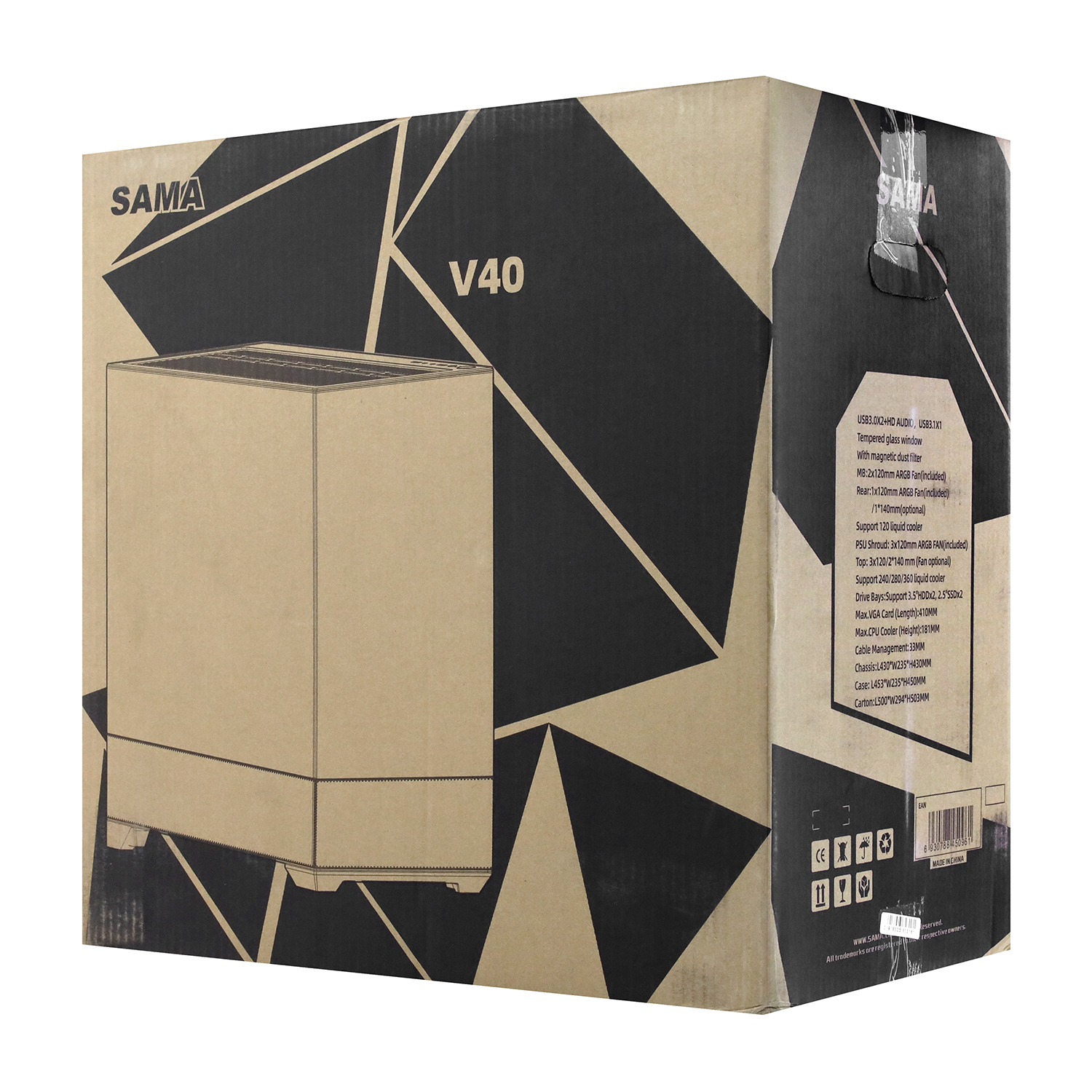 Case ATX midi tower SAMA, V40 , (Без БП), White