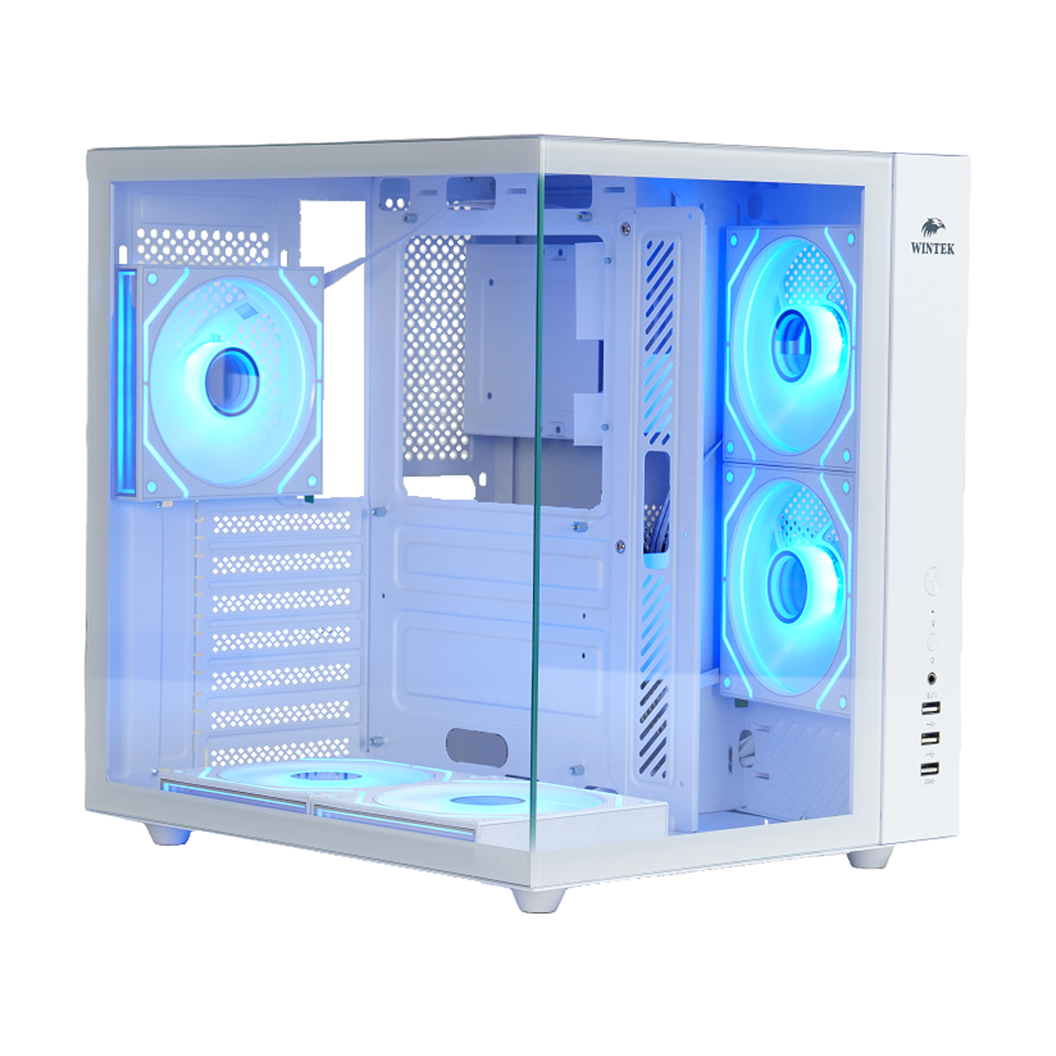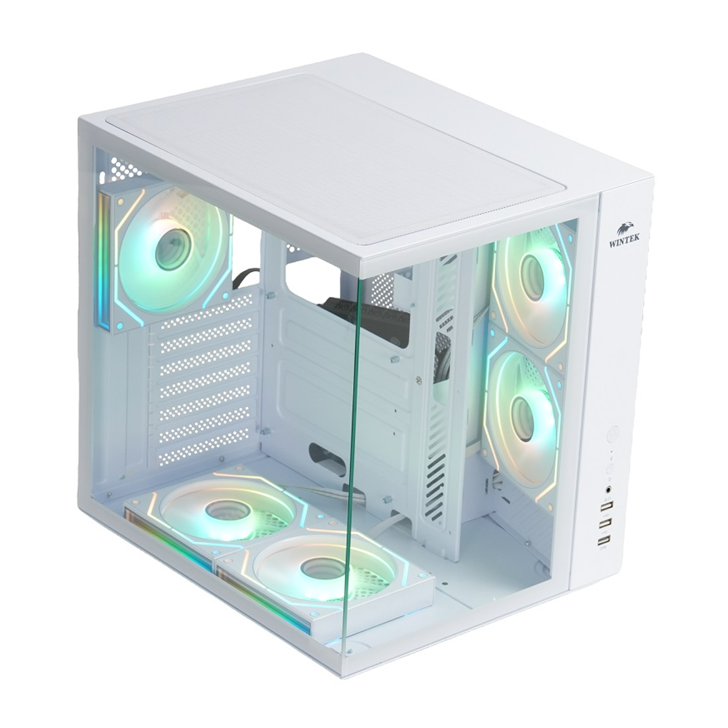 Case ATX midi tower Wintek, Cube pro V909-W TG, (без БП), White