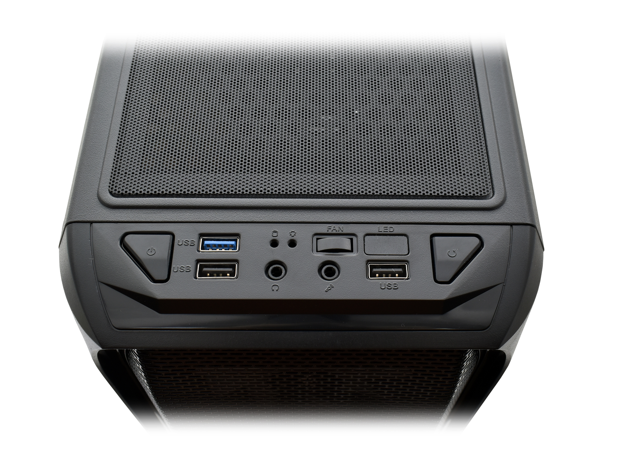 Спереди: 3x 120 мм вентиляторa со статичной подсветкой со статичной Сверху: 3х 120 мм вентилятора (опция) со статичной Сзади: 1x 120 мм вентилятор со статичной подсветкой со статичной Поддержка охлаждения видеокарт: 2x 120 мм вентилятора (опция; может занимать слоты расширения)