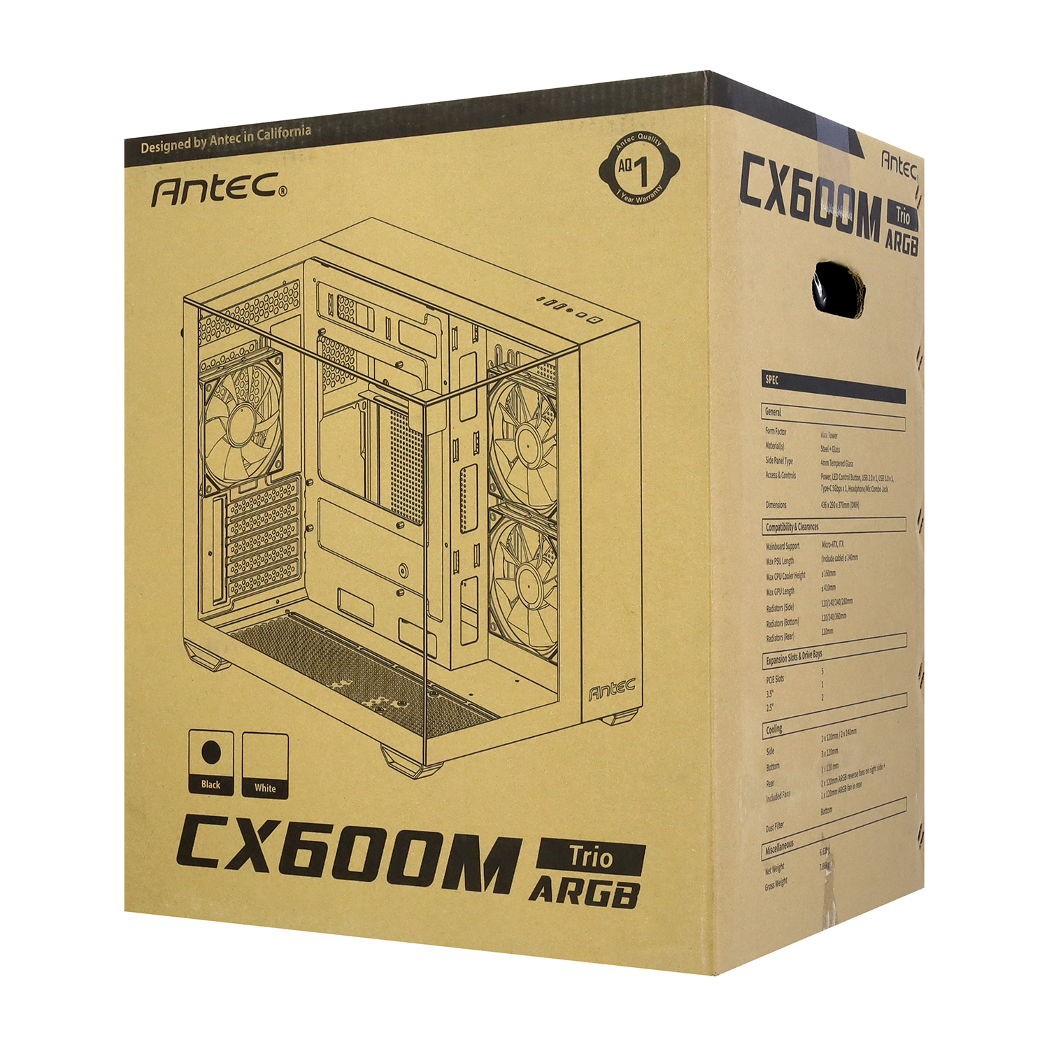 Корпус MATX mini tower Antec, CX600M TRIO ARGB, [0-761345-10139-4], черный Case 3*120 ARGB, (Без БП), black