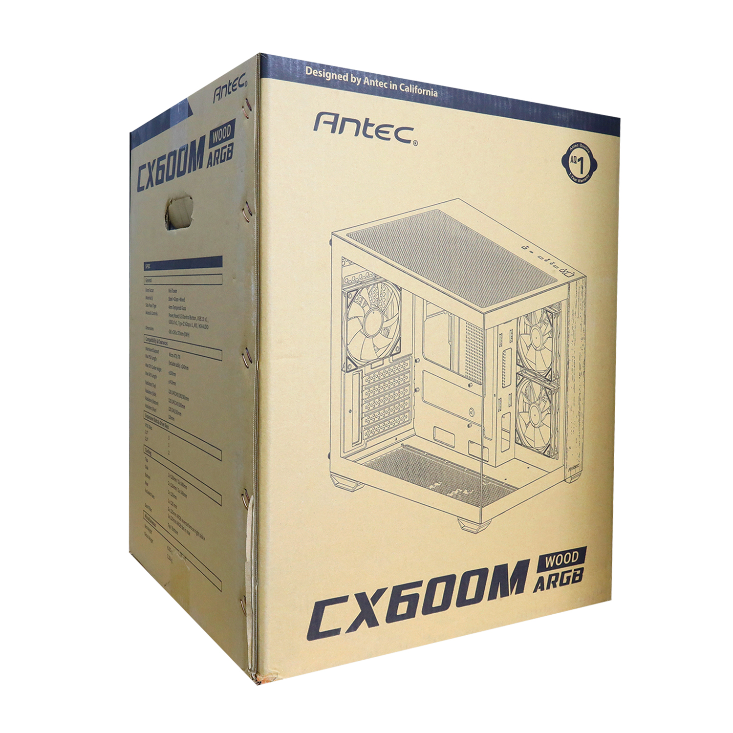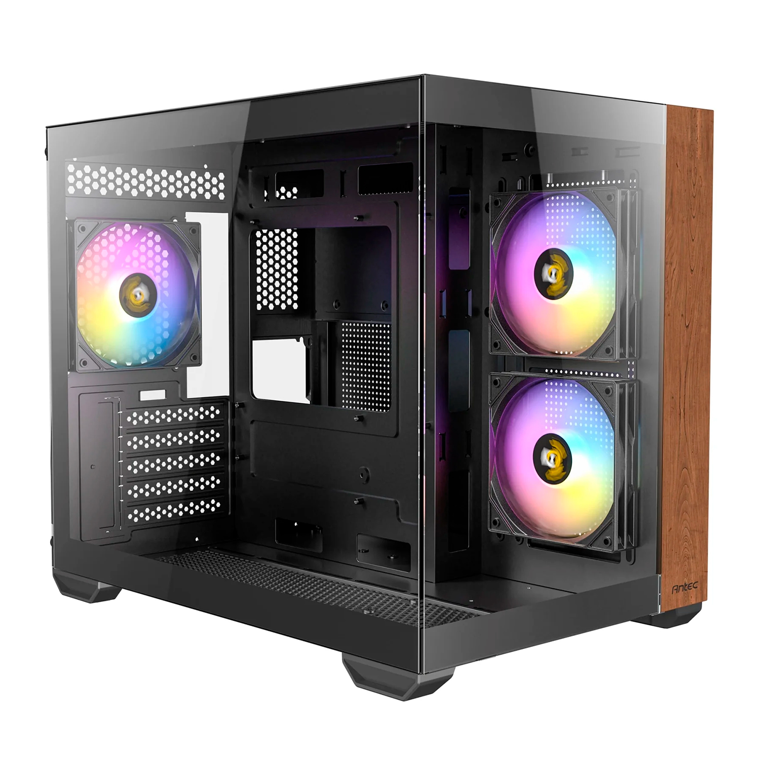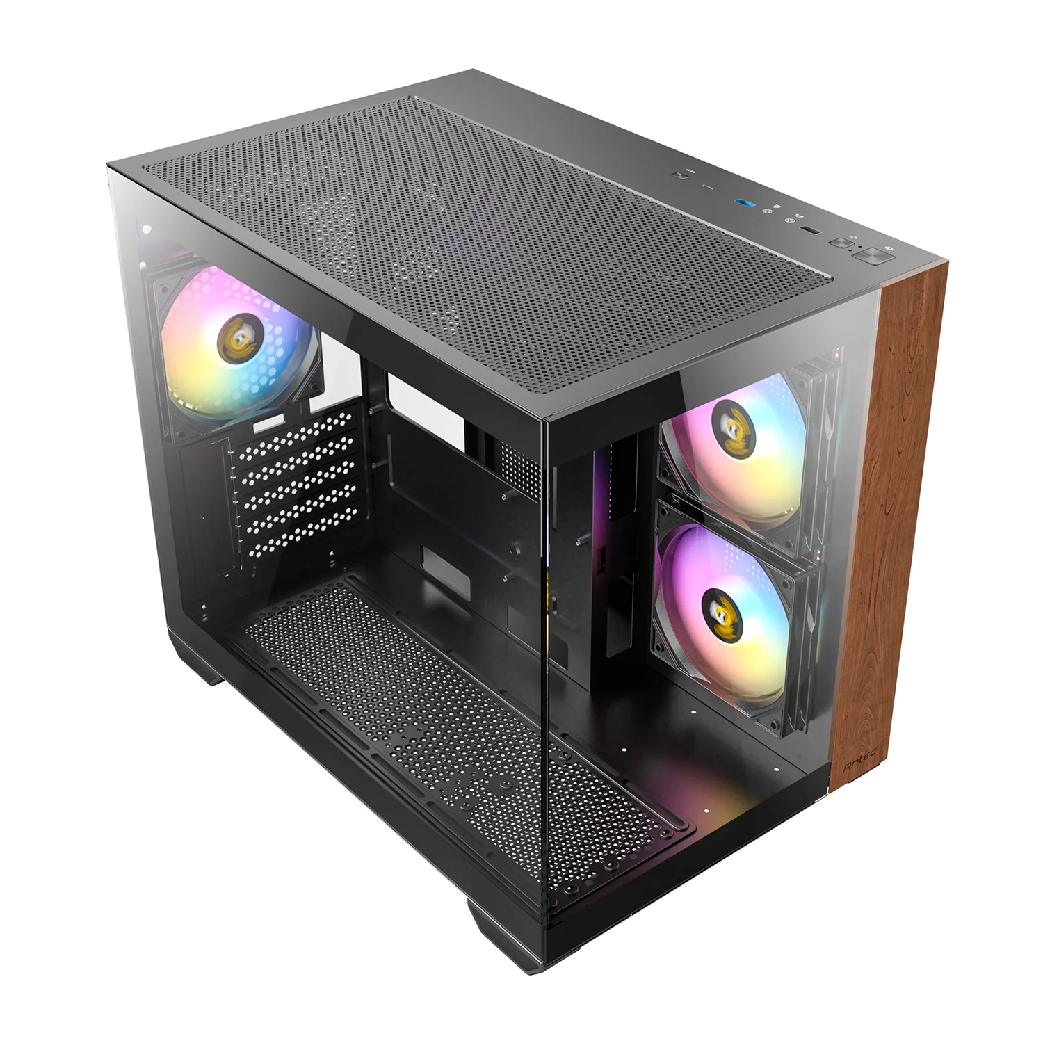 Корпус MATX mini tower Antec, CX600M Wood ARGB, [0-761345-10138-7], black-wood Case 3*120 ARGB, (Без БП)
