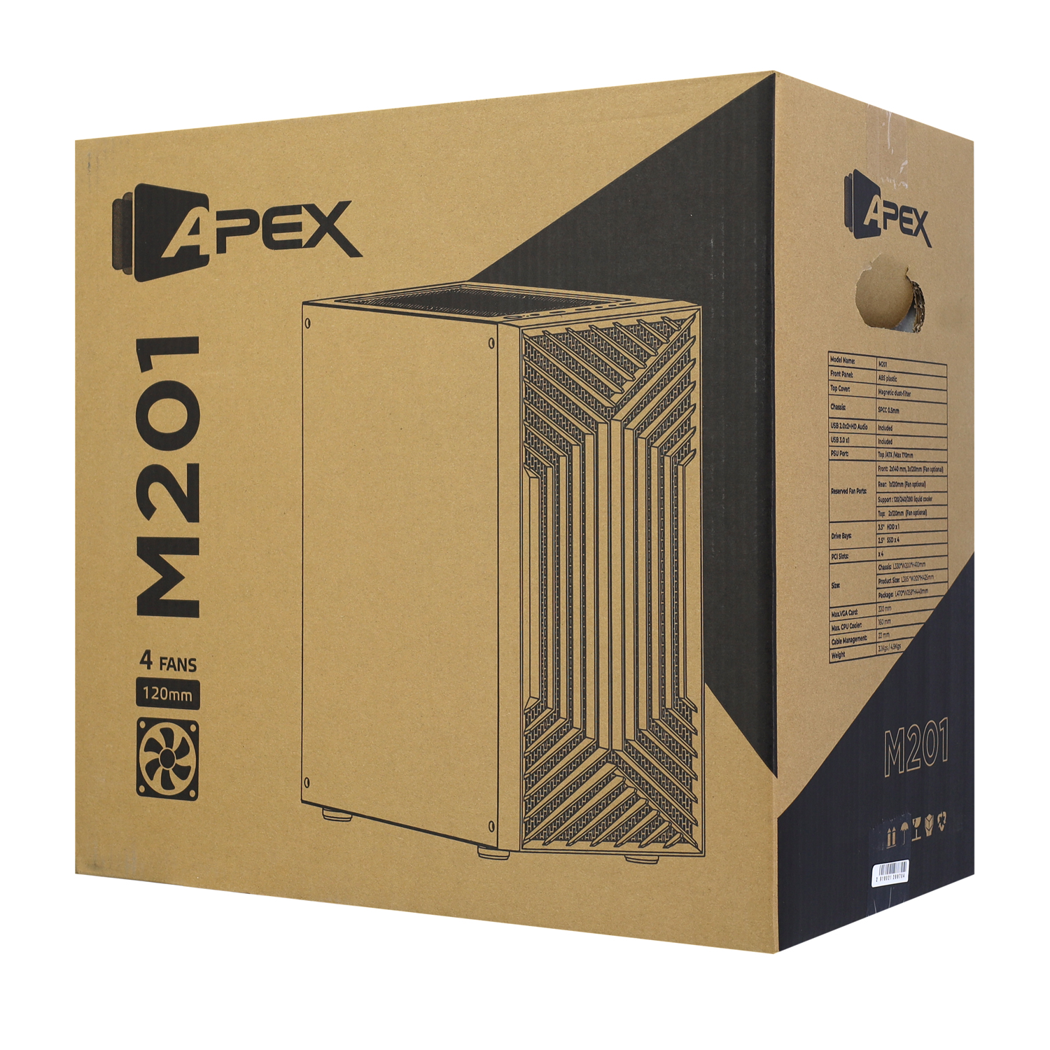 Корпус MATX mini tower APEX M201,4*120 fan, (без БП), черный Case 4*120 black
