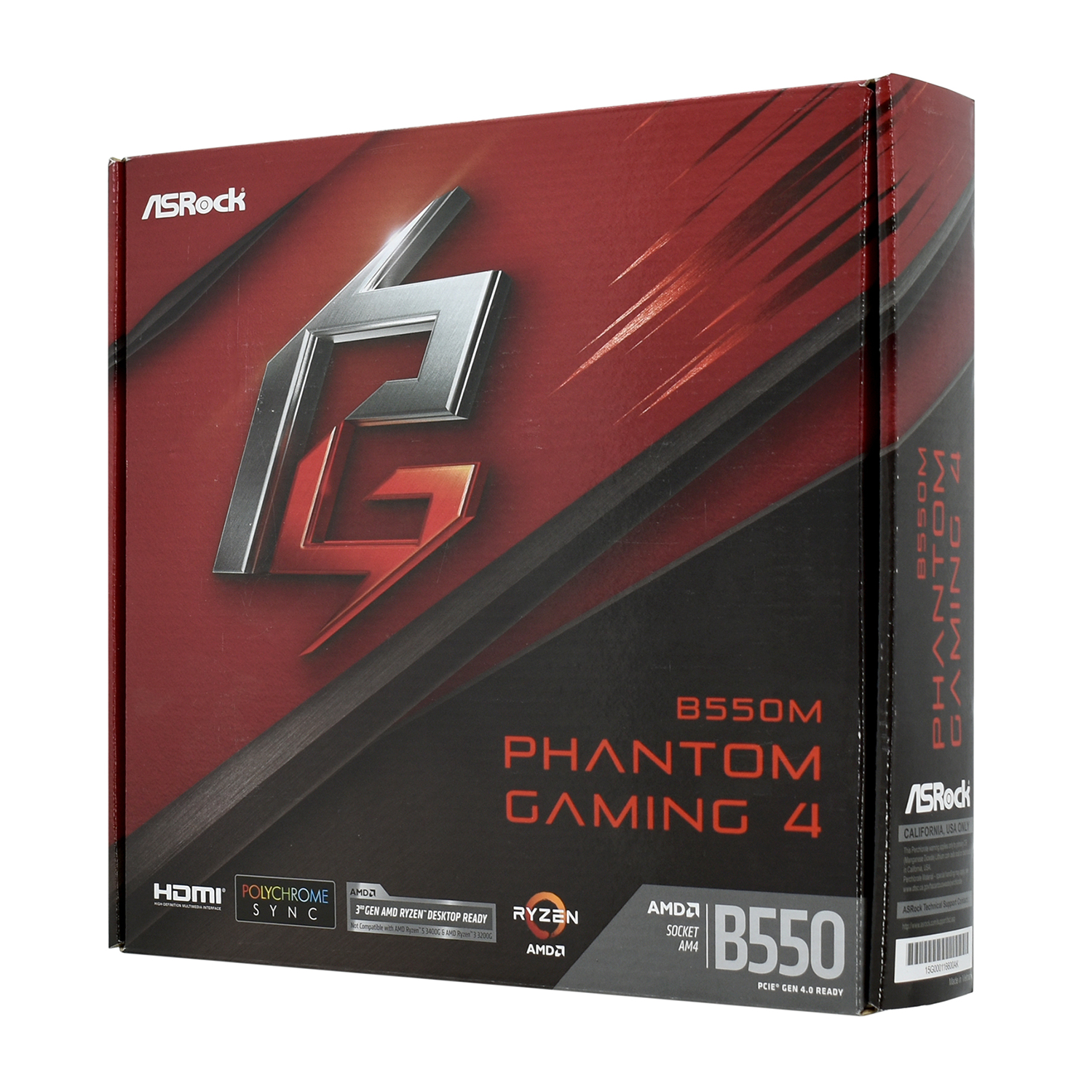 Материнская плата ASRock B550M PHANTOM GAMING 4 MB Socket AM4, MATX, AMD B550 (DP+HDMI) 4DDR4, 2PCIx16, PCIx1