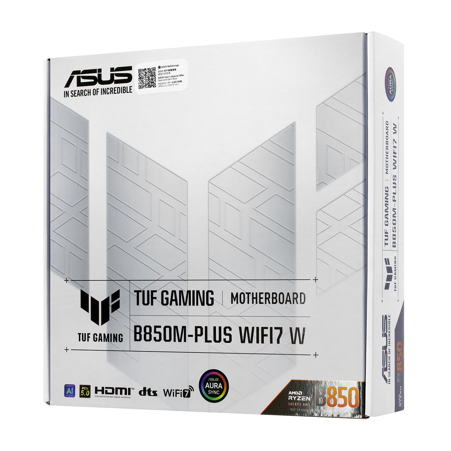 Материнская плата ASUS TUF GAMING B850M-PLUS WIFI7 W MB Socket AM5, MATX, AMD B850 (DP+HDMI), 4DDR5, PCIx16