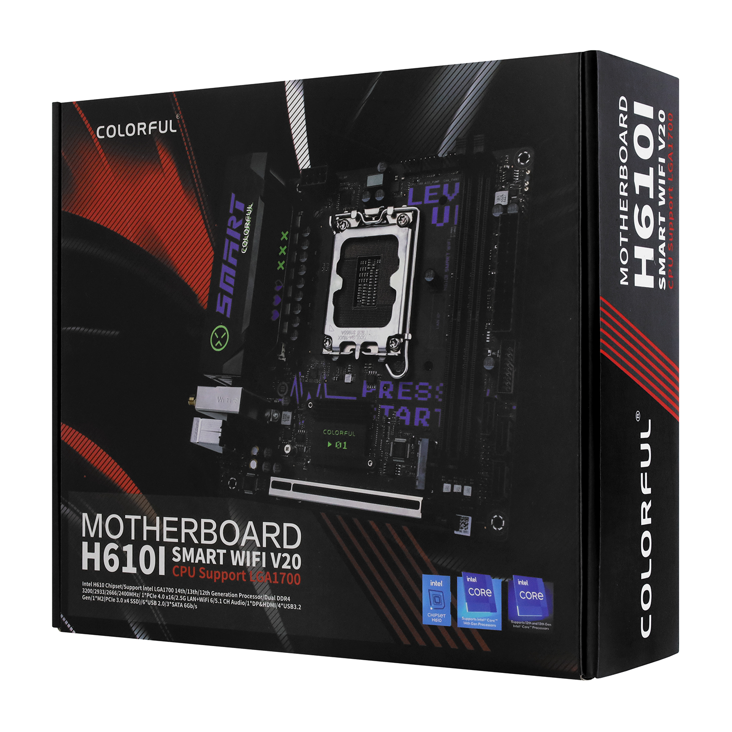 Материнская плата Colorful H610I SMART WIFI V20 MB Socket1700, mITX, iH610 (DP+HDMI), 2DDR4, PCIx16, PCIx1