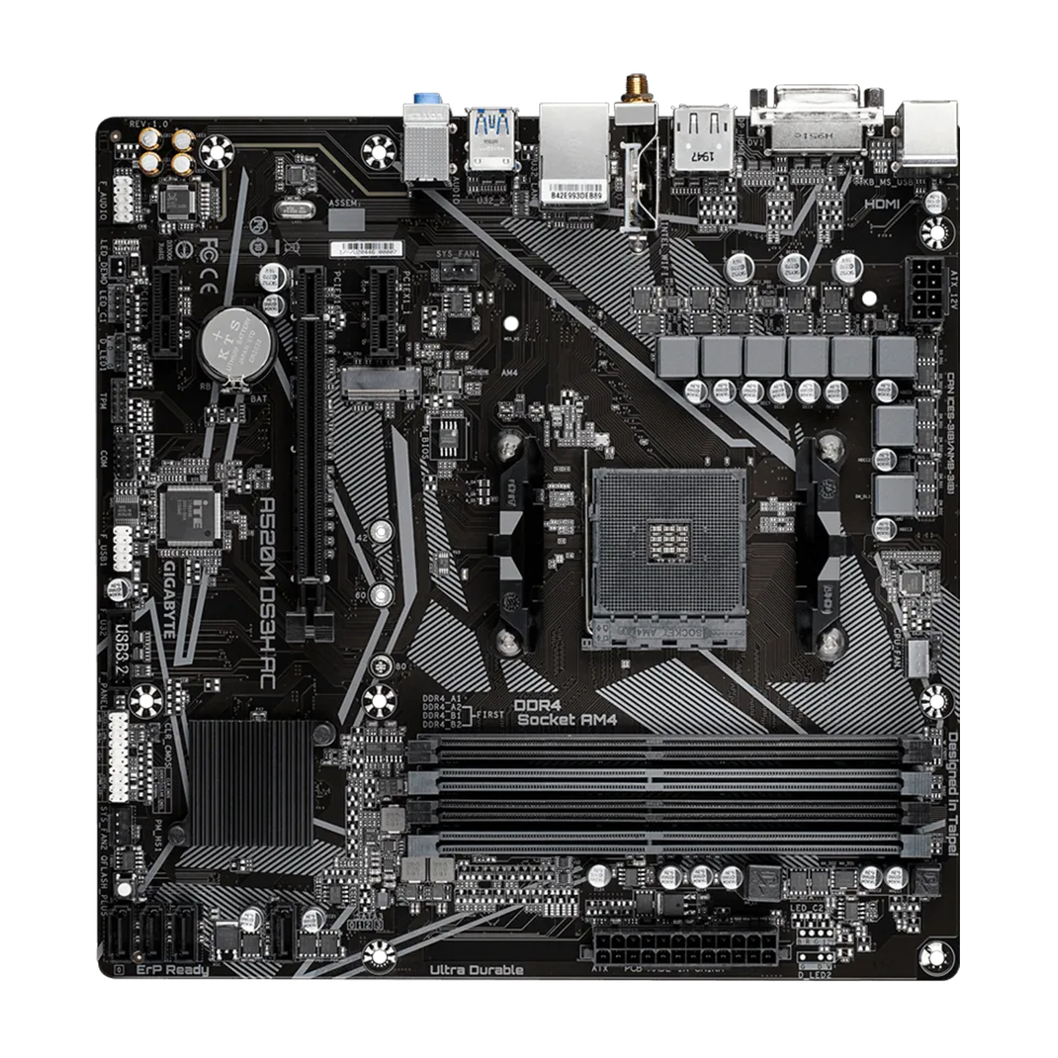 Материнская плата GIGABYTE A520M DS3H AC MB Socket AM4, MATX, AMD A520 (DP+HDMI) 4DDR4, PCIx16