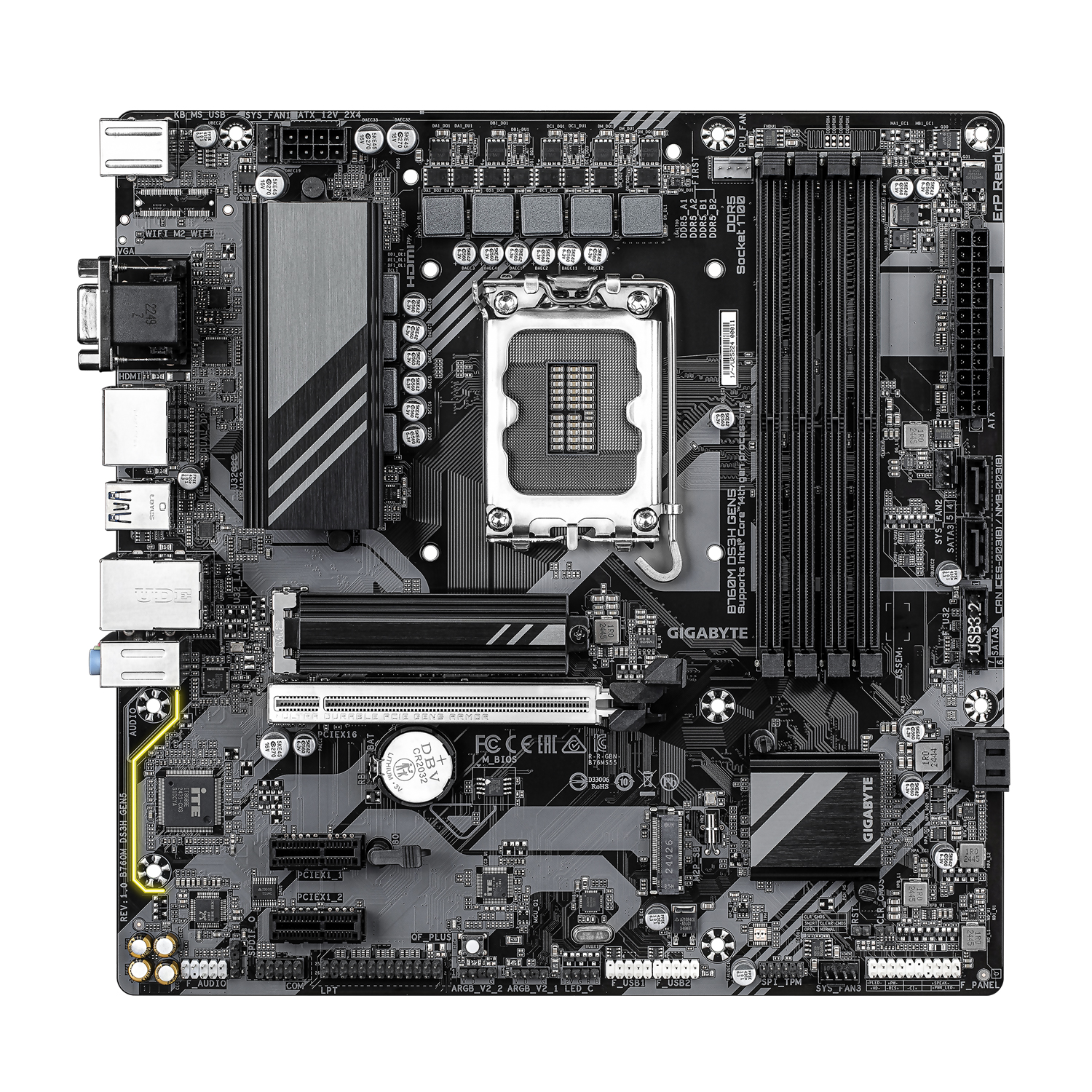 Материнская плата Gigabyte B760M DS3H GEN5 MB Socket1700, MATX, iB760 (VGA+2DP+HDMI), 4DDR5, PCIx16, 2PCIx1