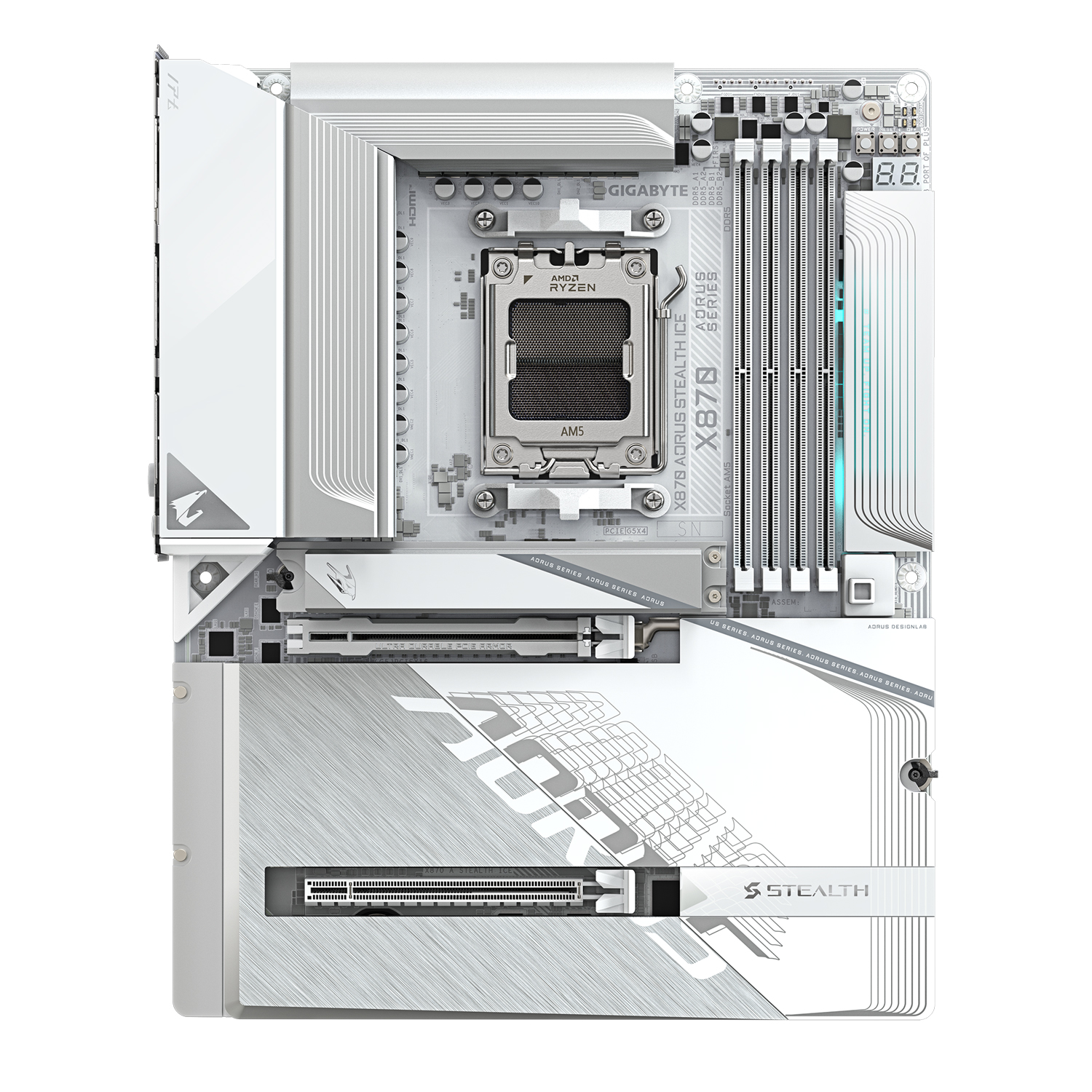 Материнская плата GIGABYTE X870 AORUS STEALTH IC MB Socket AM5, ATX, AMD X870 (HDMI), E, 4DDR5, PCIx16, PCIx1