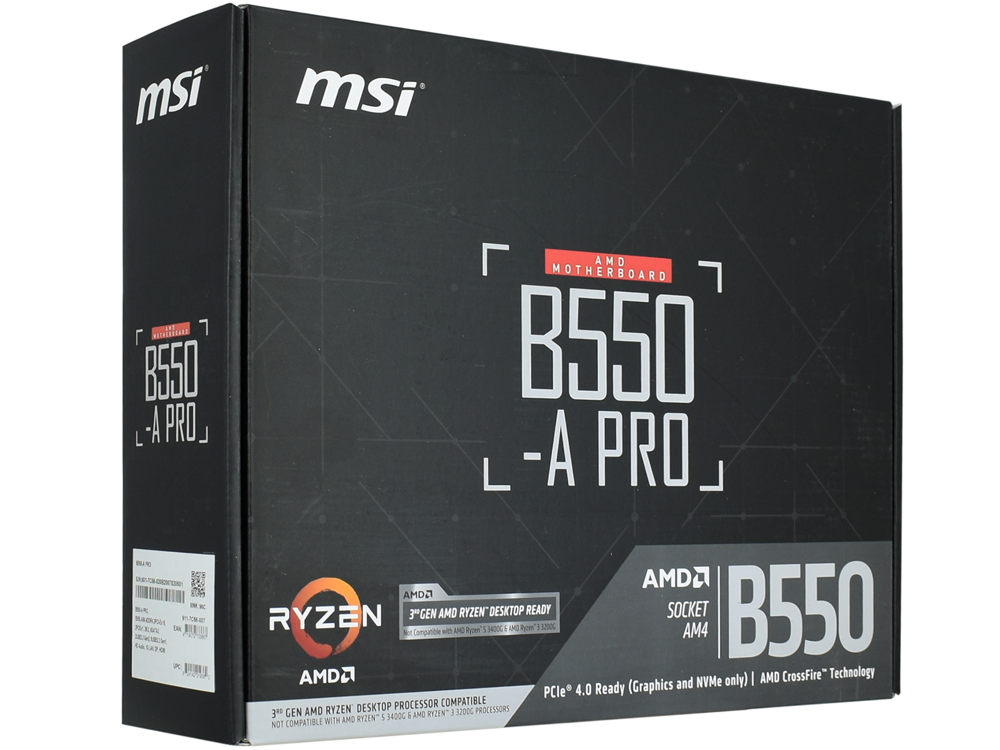 MB Socket AM4, ATX, AMD B550 (DP+HDMI, SB, GNIC) MSI B550-A PRO, 4DDR4, 2PCIx16,2PCIx1