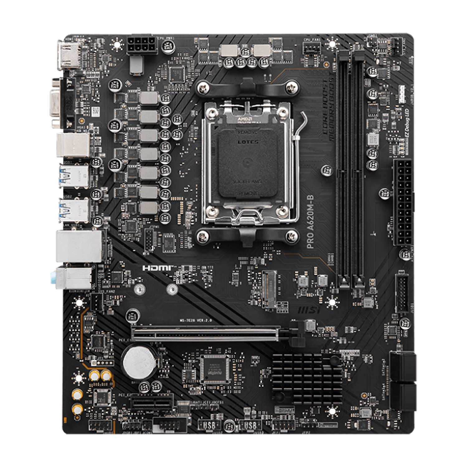 Материнская плата MSI PRO A620M-B MB Socket AM5, MATX, AMD A620 (VGA+HDMI) 2DDR5, PCIx16, PCIx1