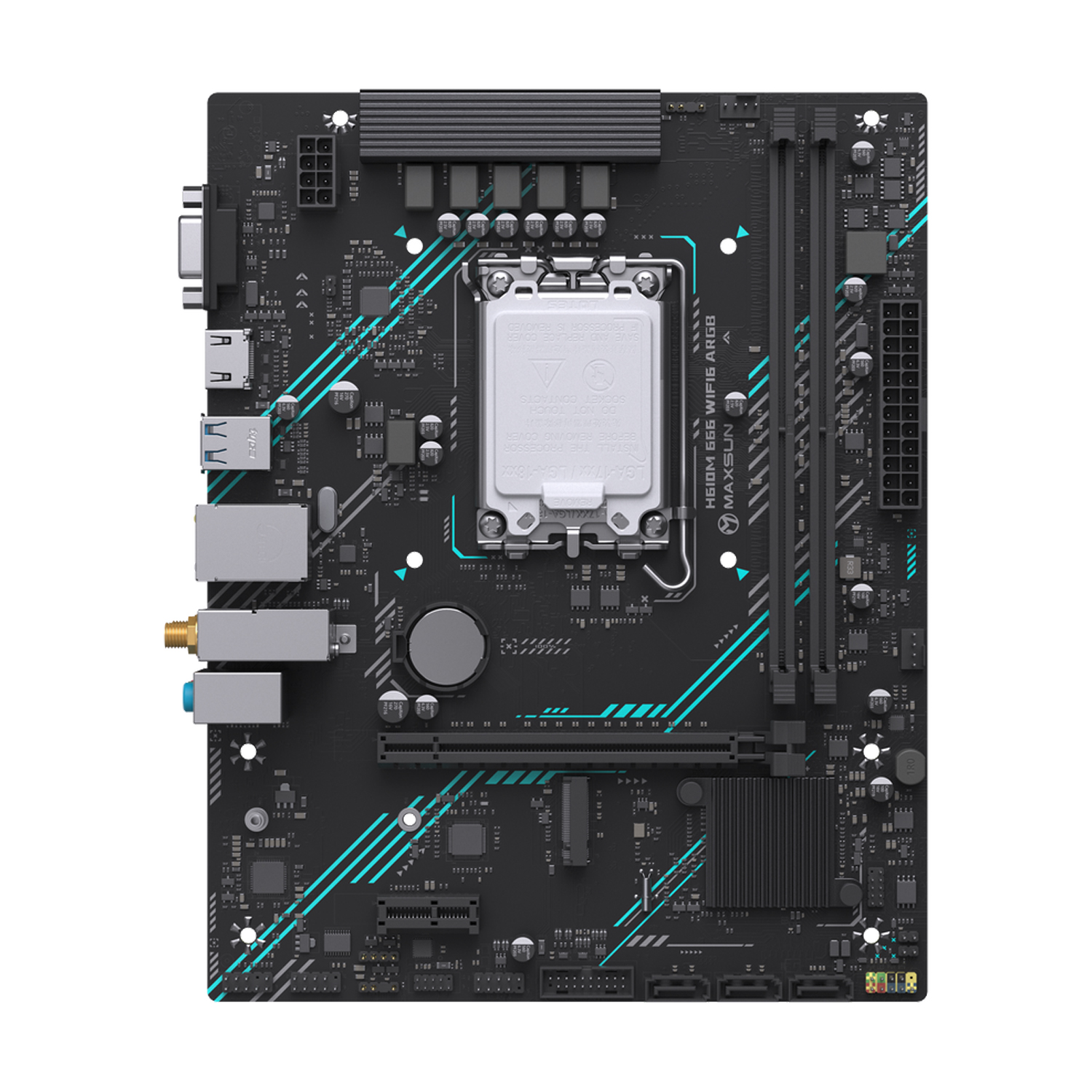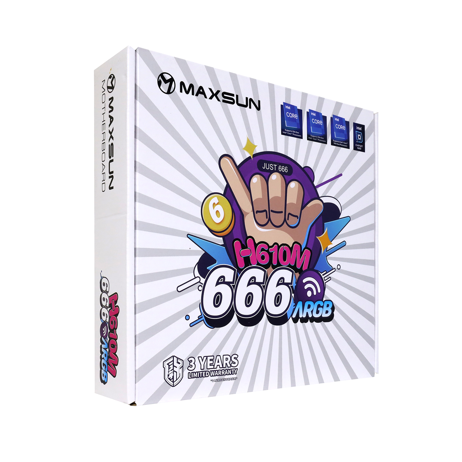Материнская платаMaxSun H610M 666 WIFI6 ARGB MB Socket1700, MATX, iH610 (VGA+HDMI), MaxSun 2DDR4, PCIx16, PCIx1