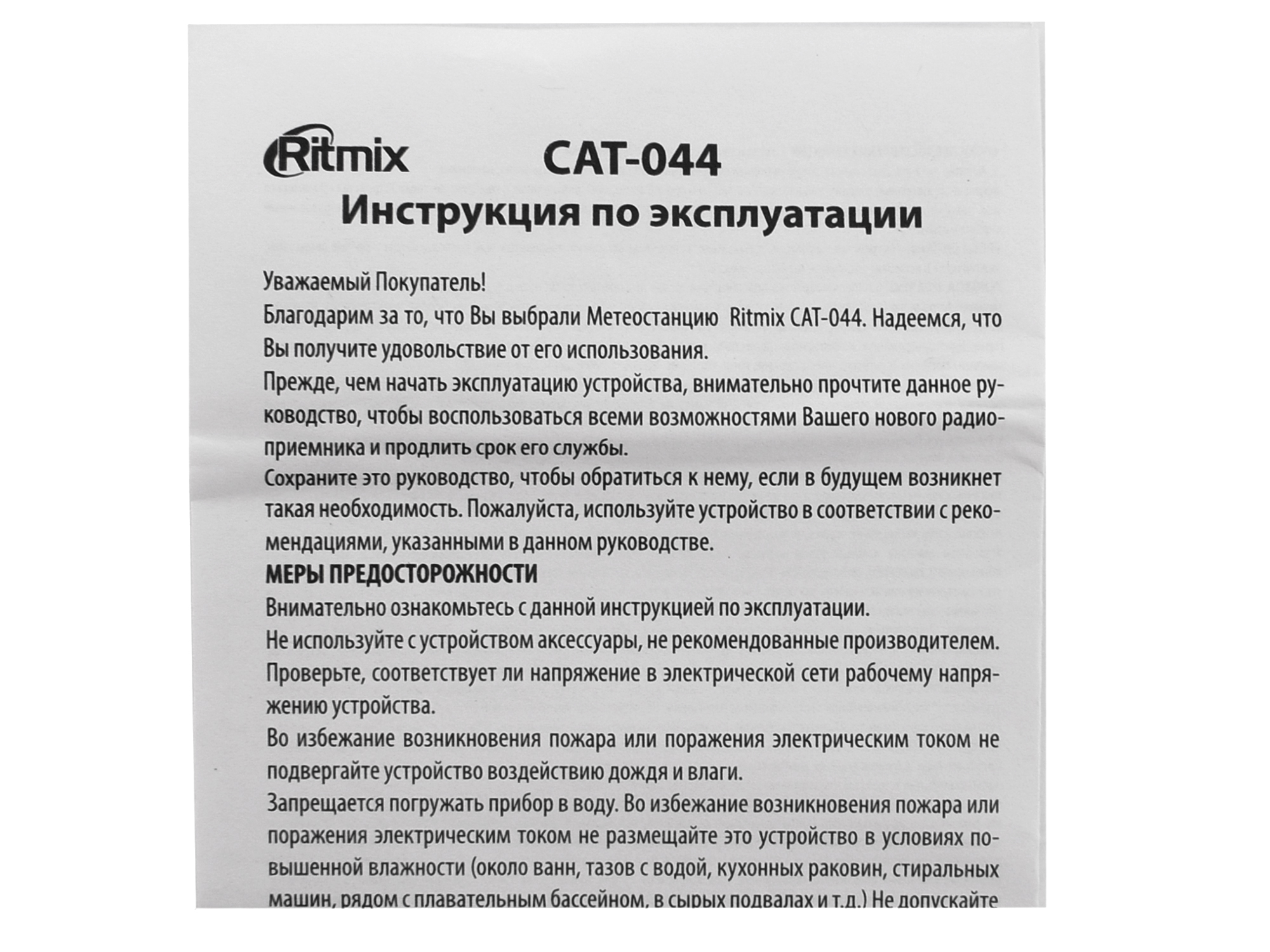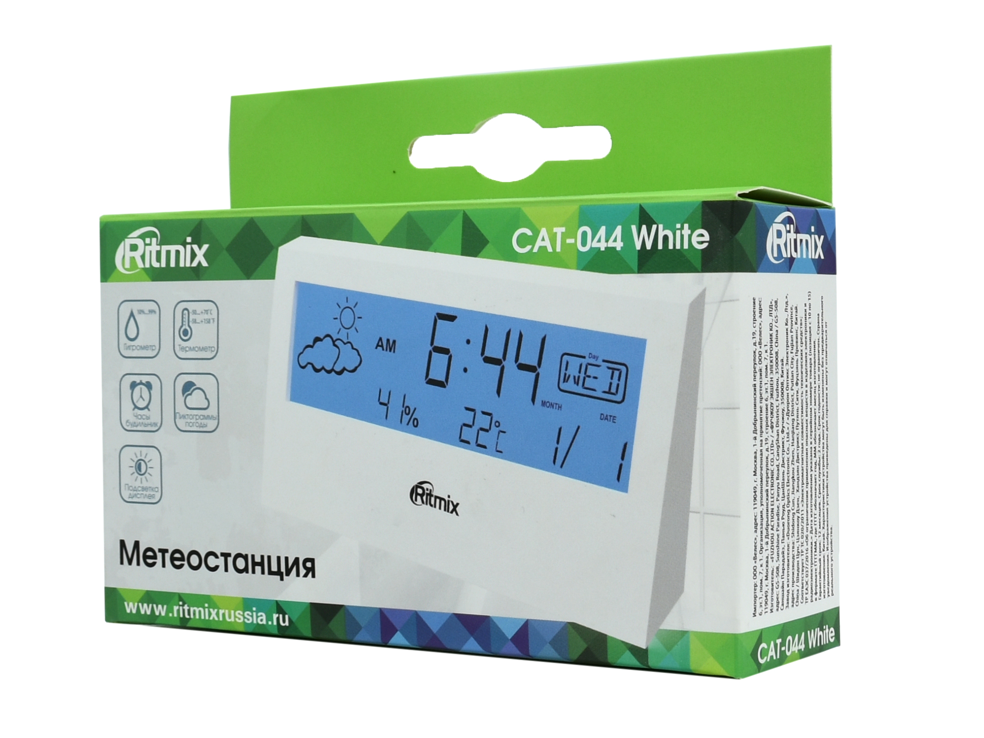 Метеостанция Ritmix CAT-044, Белый Weather station 2xAAA (not included), white