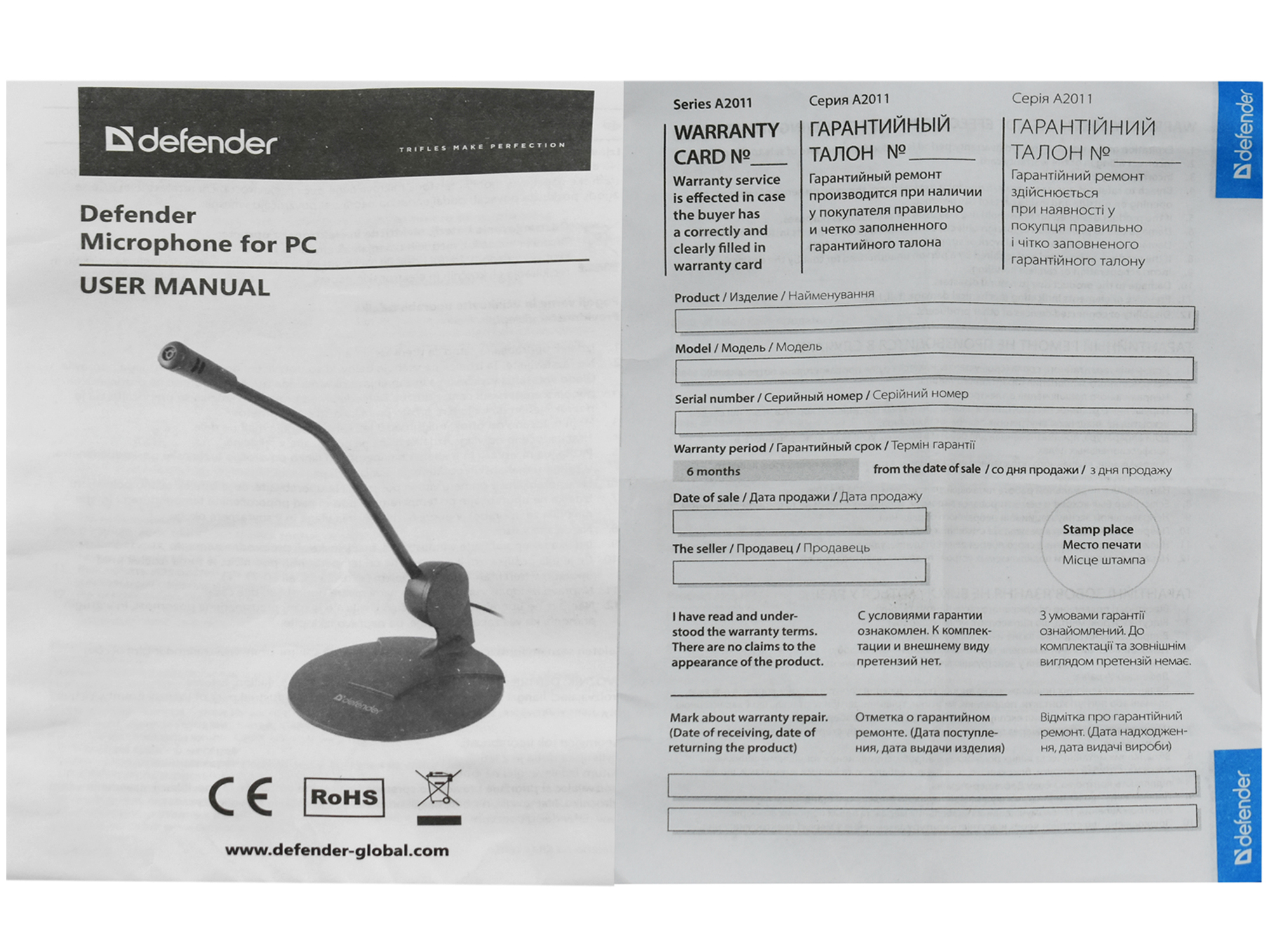 Microphone 10-13000Hz, 54dB, 1.7m cable, black