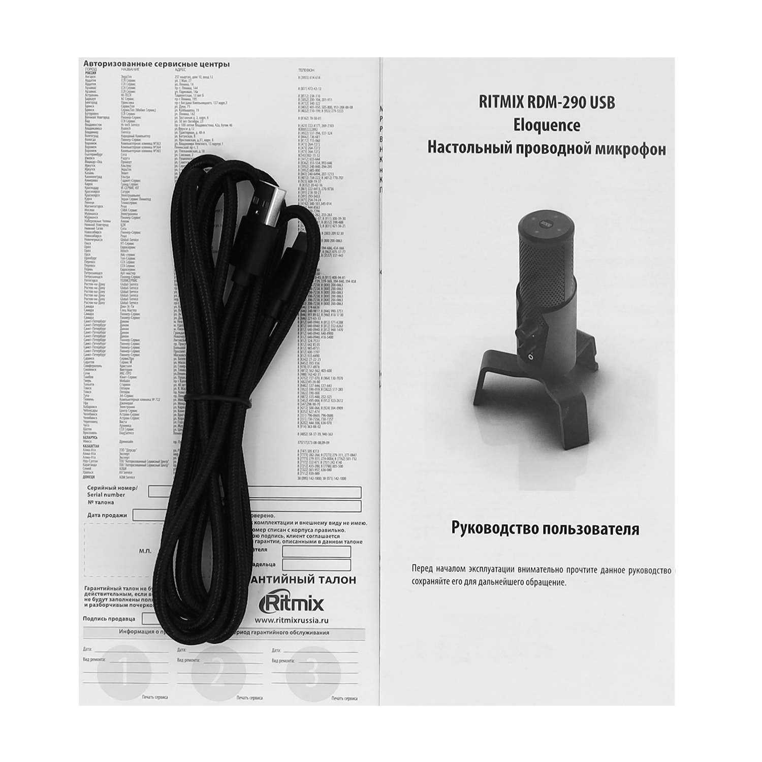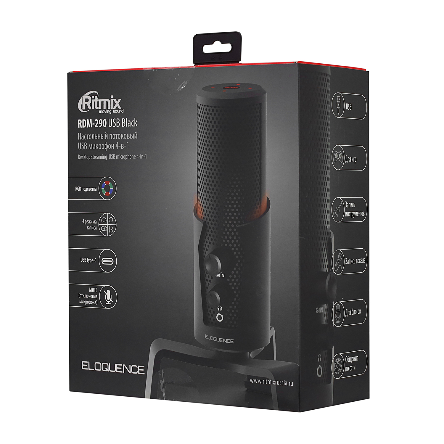 Микрофон Ritmix RDM-290 USB Eloquence, Черный Microphone 20-20000Hz, 24bit/96kHz, USB Type C, RGB, black
