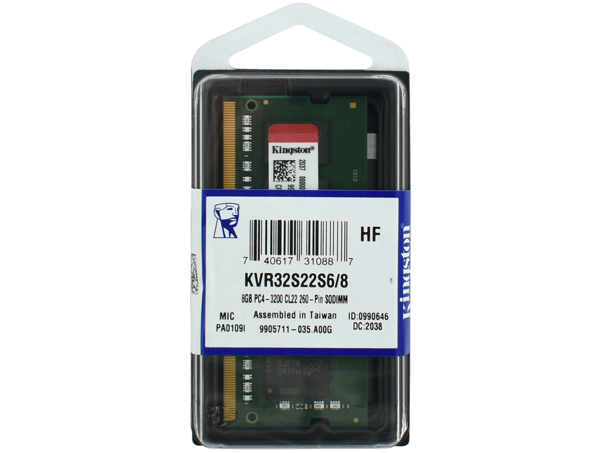 Модуль памяти для ноутбука, Kingston, KVR32S22S6/8, DDR4, 8 GB SO-DIMM <3200MHz> CL22, 8 chip