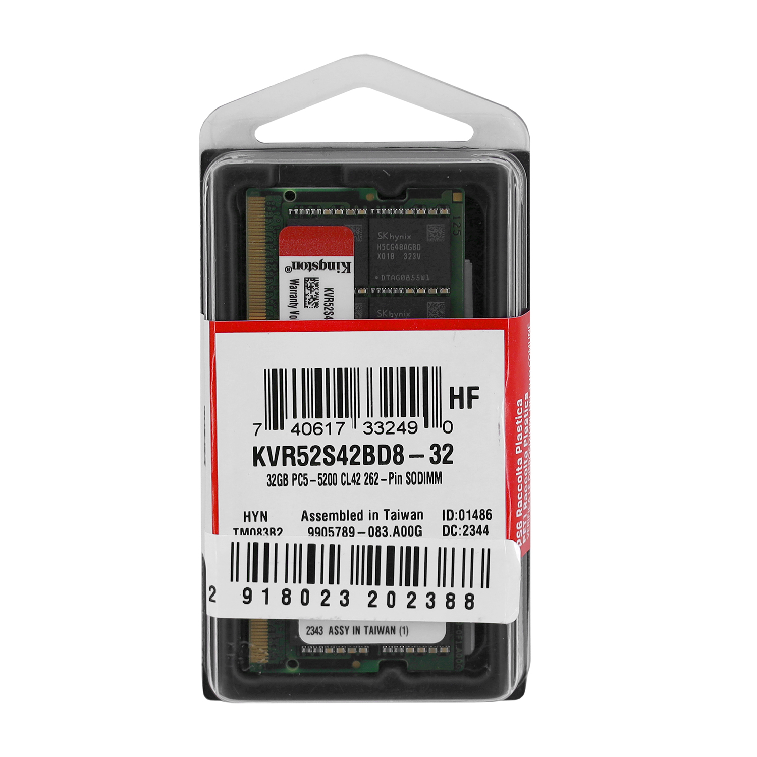 Модуль памяти для ноутбука, Kingston, KVR52S42BD8-32, DDR5, 32 GB SO-DIMM <5200MHz> CL42