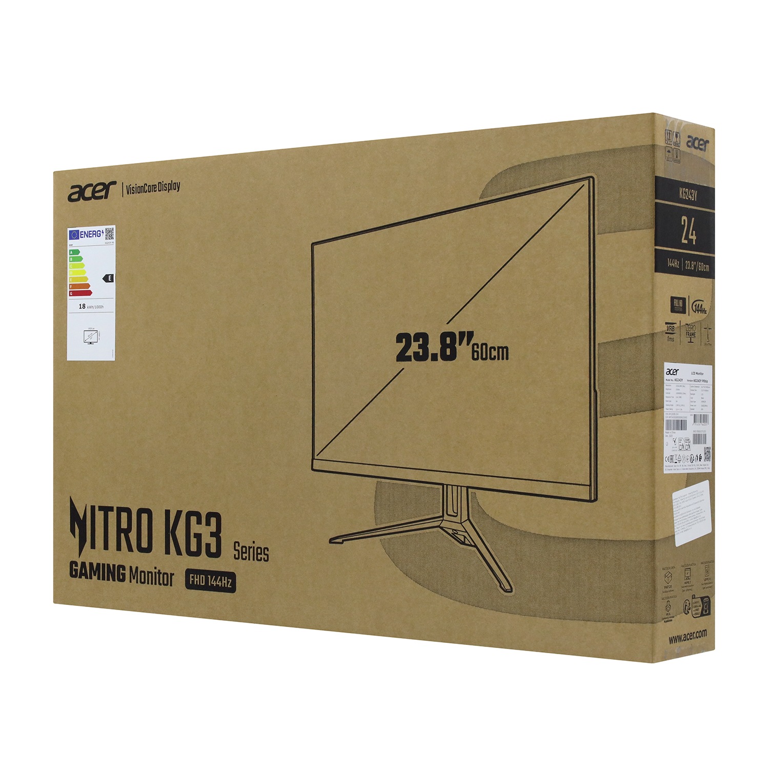 LCD 23.8" Acer KG243YP0bip, 1920x1080 VA (IPS), 1ms, 250 cd/m2, 1000:1, HDMI/DP