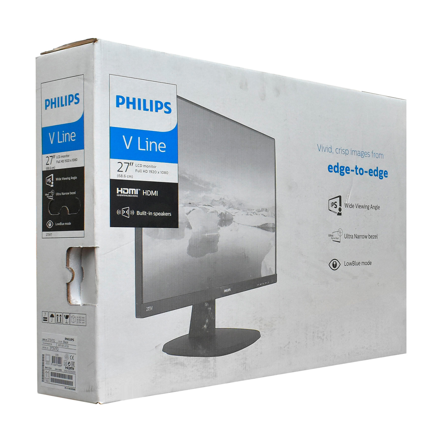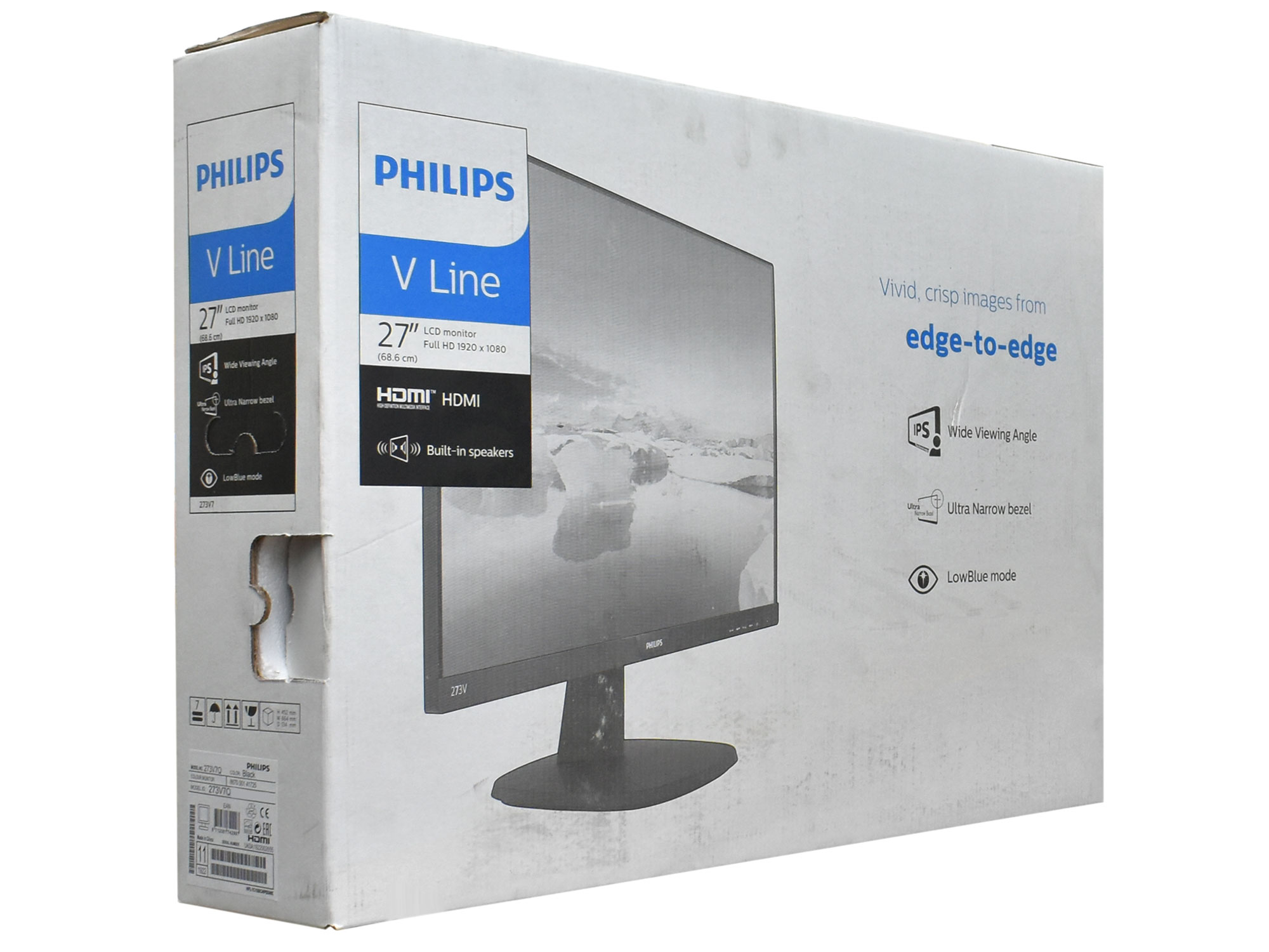 Монитор Philips 273V7QJAB/01 LCD 27" 1920x1080 IPS (LED), 5ms, 250cd/m2, 1000:1, 2W*2, DP/HDMI/D-Sub