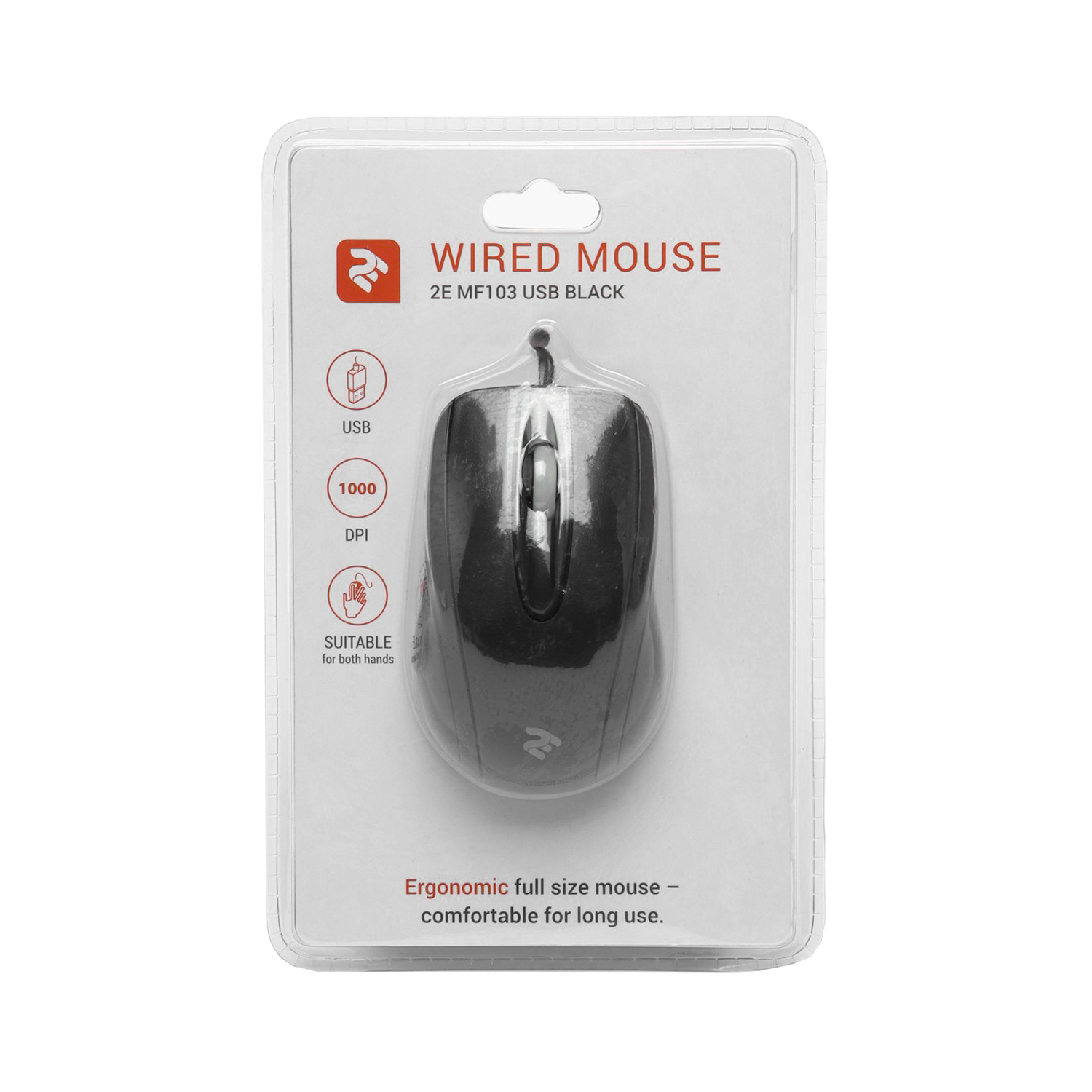 Мышь 2E, 2E-MF103UB, Optical, 1000 dpi, USB, Черный Mouse 1.5m cable, black