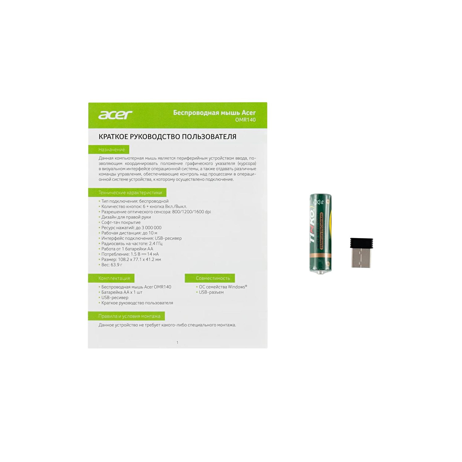 Мышь Acer OMR140, USB, Черный Mouse Wireless, Optical 1600 dpi, 1AA, black