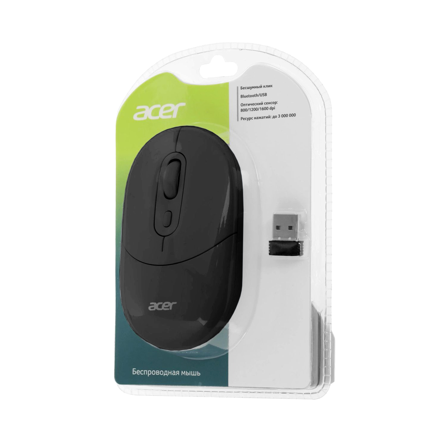 Мышь Acer OMR301, USB, Черный Mouse Optical 1600 dpi, Silent, BT/2.4GHz Black