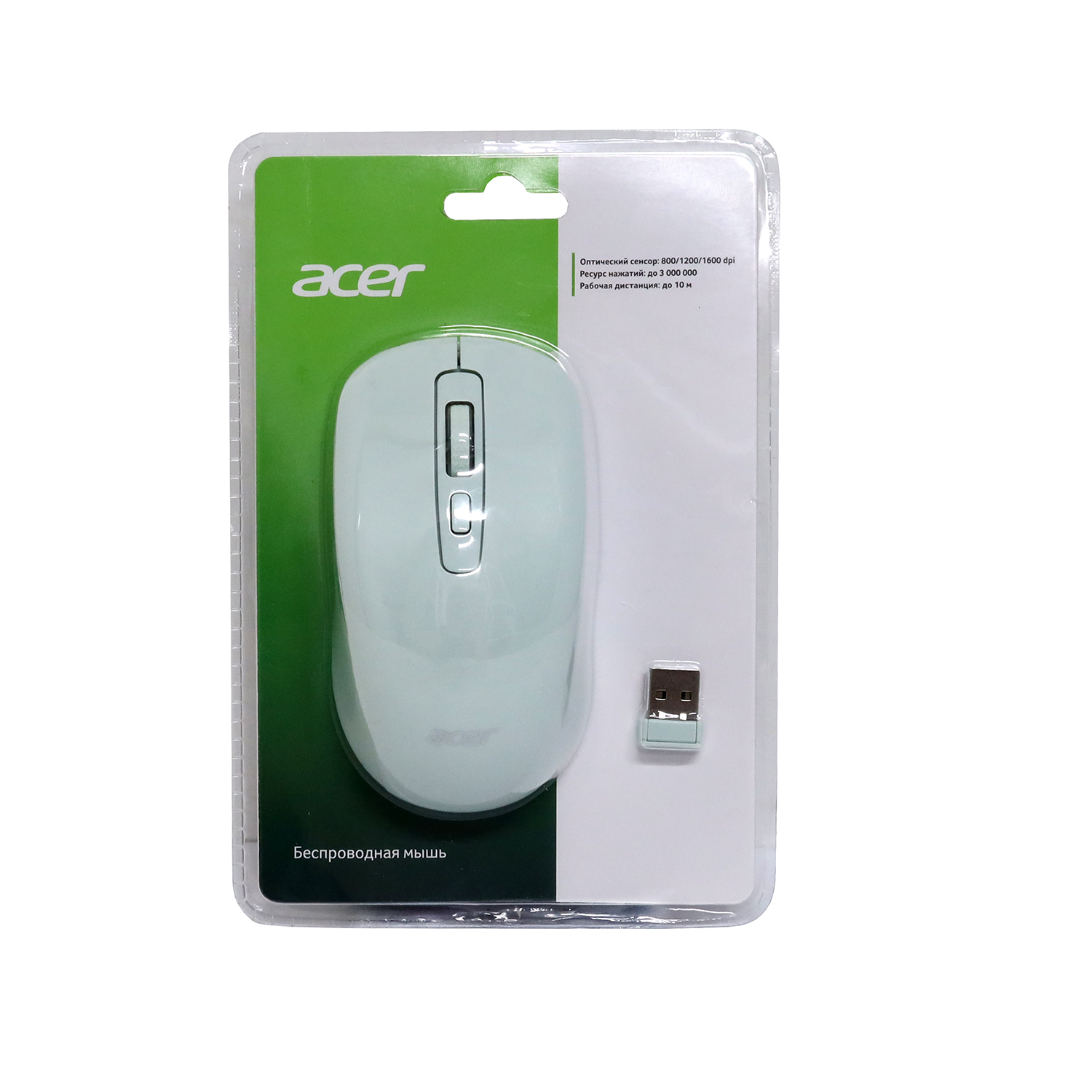 Мышь Acer OMR309, USB, Зеленый Mouse Optical 1600 dpi, 1AA, Green