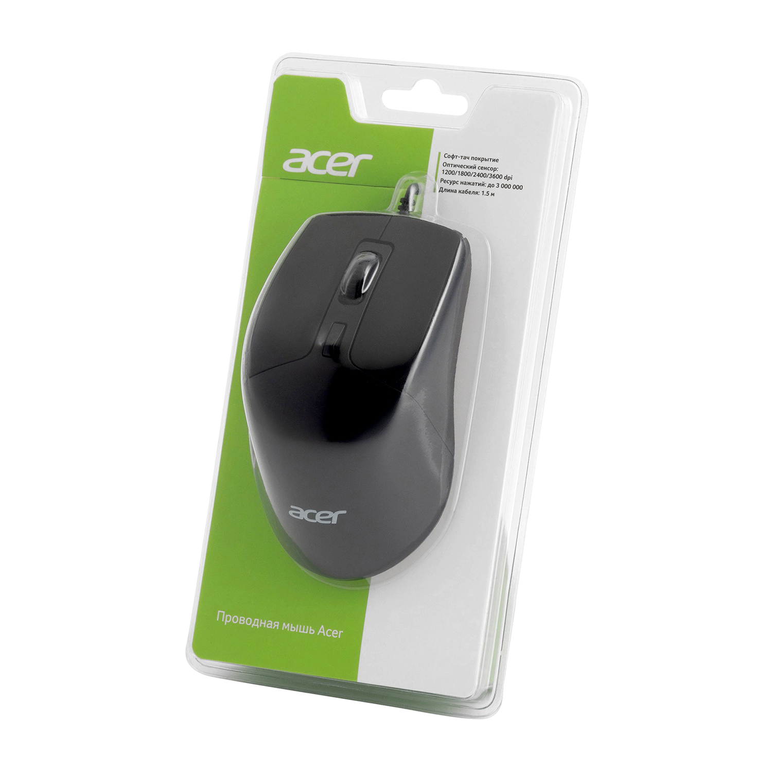 Мышь Acer OMW130, USB, Черный Mouse Optical 3600 dpi, 6 button, 1.5m cable, black