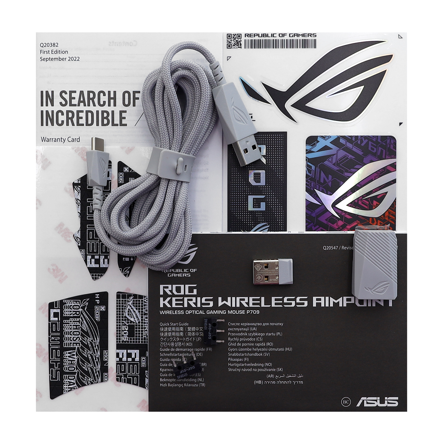 Mouse ASUS P709 ROG KERIS WL AIMPOINT, Wireless, BT 5.0/2.4GHz, Optical 36000 dpi, USB, white