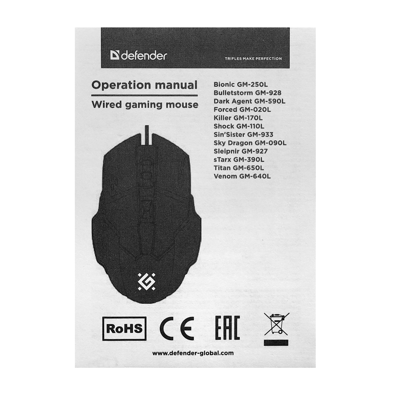 Мышь Defender Bulletstorm GM-928, USB Mouse Optical 1200-7200 dpi, 6 buttons, black (52928)