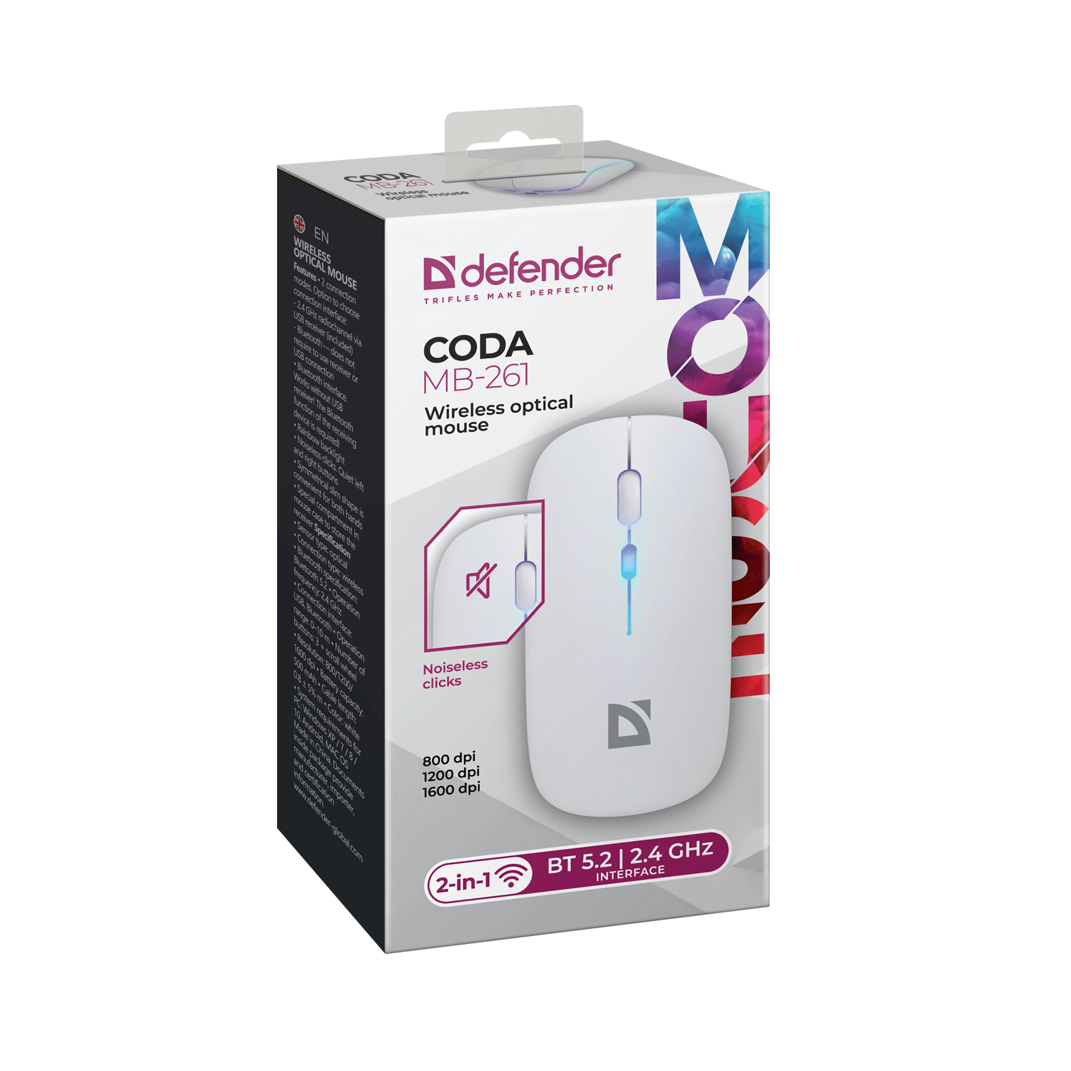 Mouse Defender Coda MB-261, USB, 1600dpi, 2.4Ghz/BT, White, (52262)