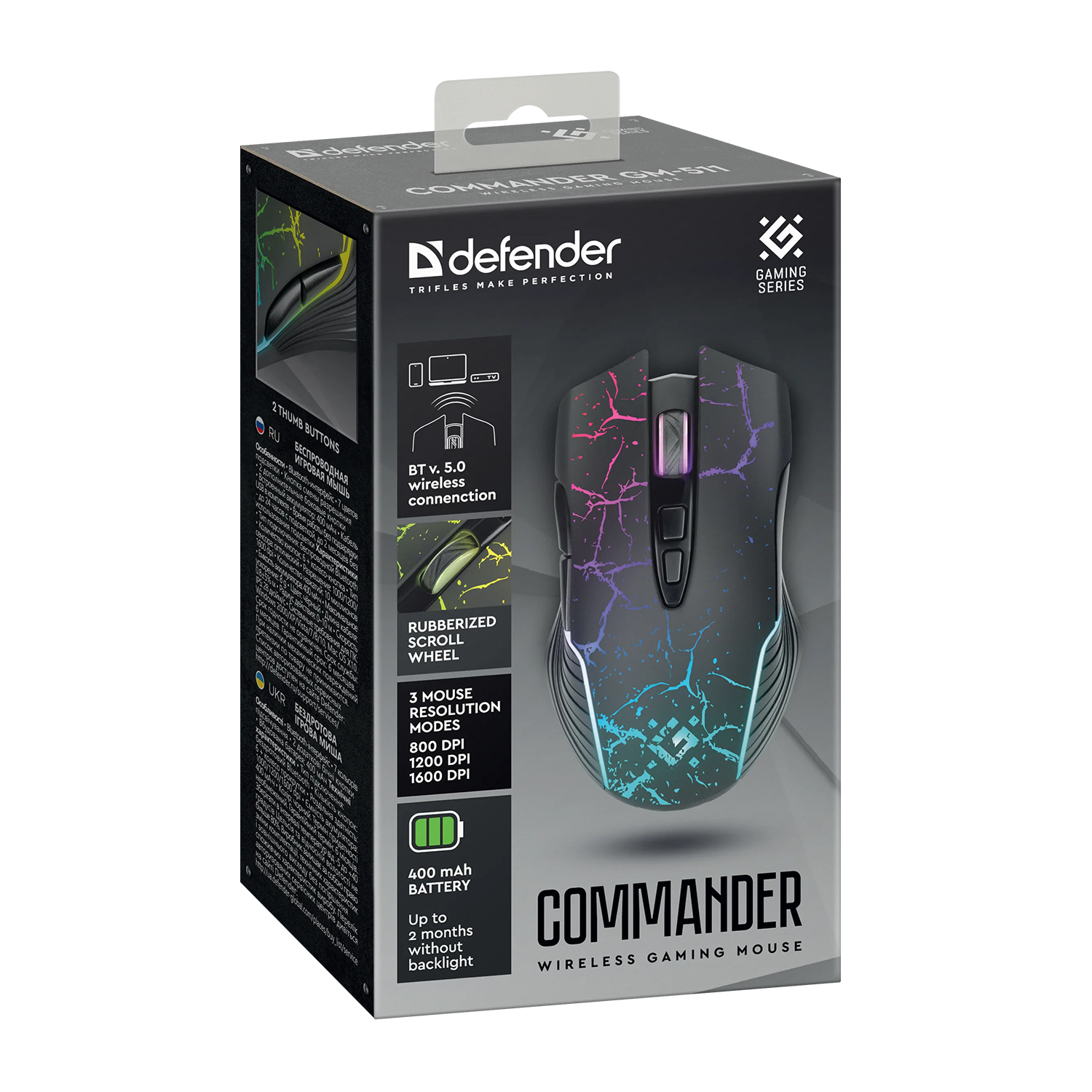 Мышь Defender Commander GM-511, USB, (52557) Mouse Wireless, Optical 800-1600 dpi, 6 buttons black