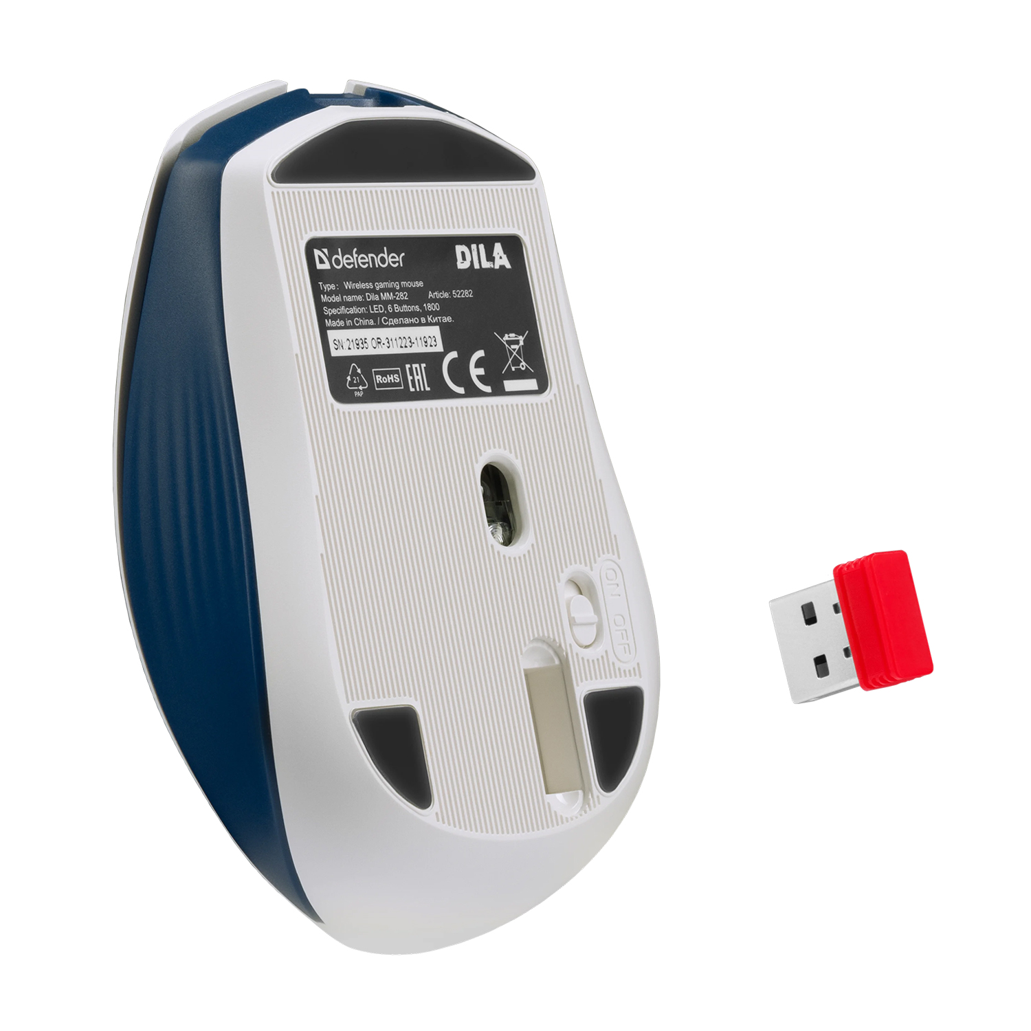 Мышь Defender Dila MM-282 LED, Голубой Mouse Wireless, Optical 800-1600 dpi, 6 buttons USB, Blue, (52282)