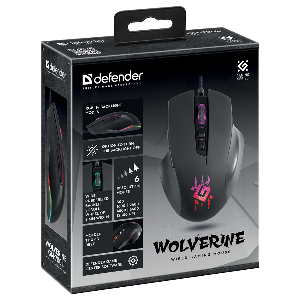 Мышь Defender Wolverine GM-700L, USB, 52700 Mouse Optical 800-12800 dpi, 5 buttons, USB, ()