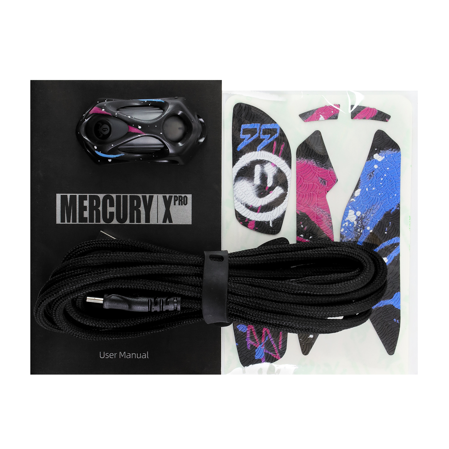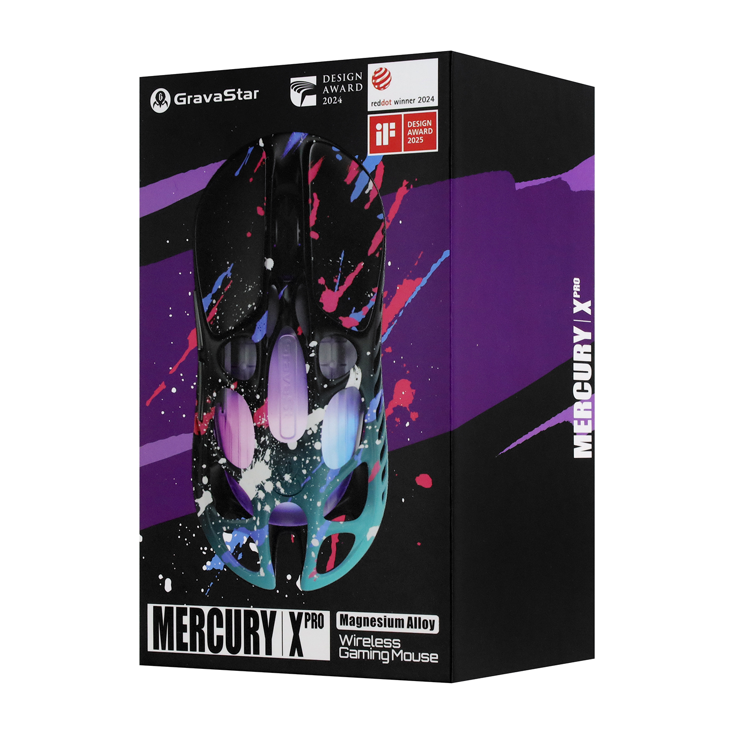 Мышь GravaStar Mercury X Pro, Граффити Mouse Wireless, BT 5.1/2.4GHz, (PAW 3950) 32000 dpi, 5 buttons, USB, Neon