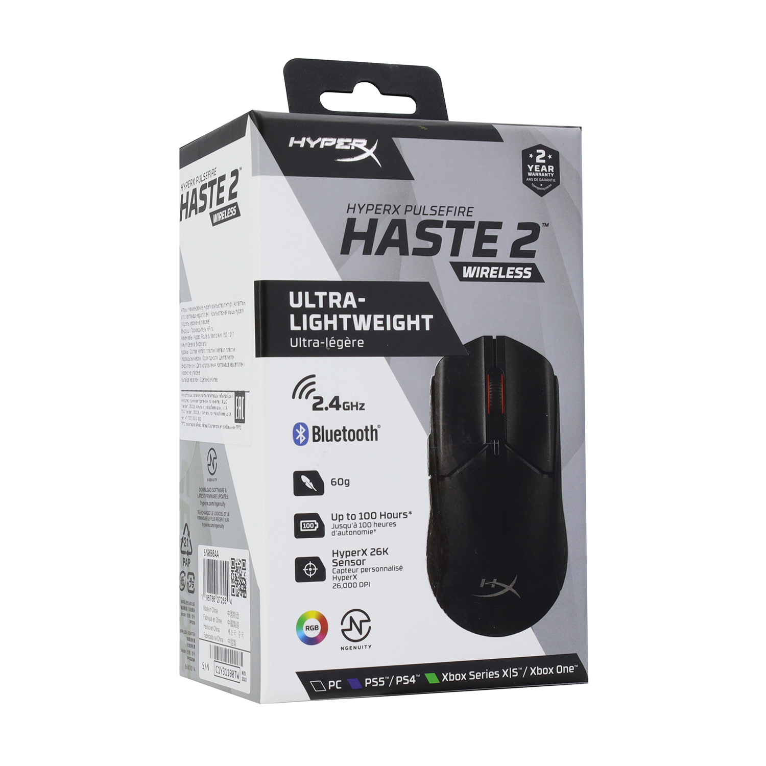 Мышь HyperX Pulsefire Haste 2, USB Mouse Wireless, (6N0B0AA), Optical, 26000dpi, BT/2.4GHz, black