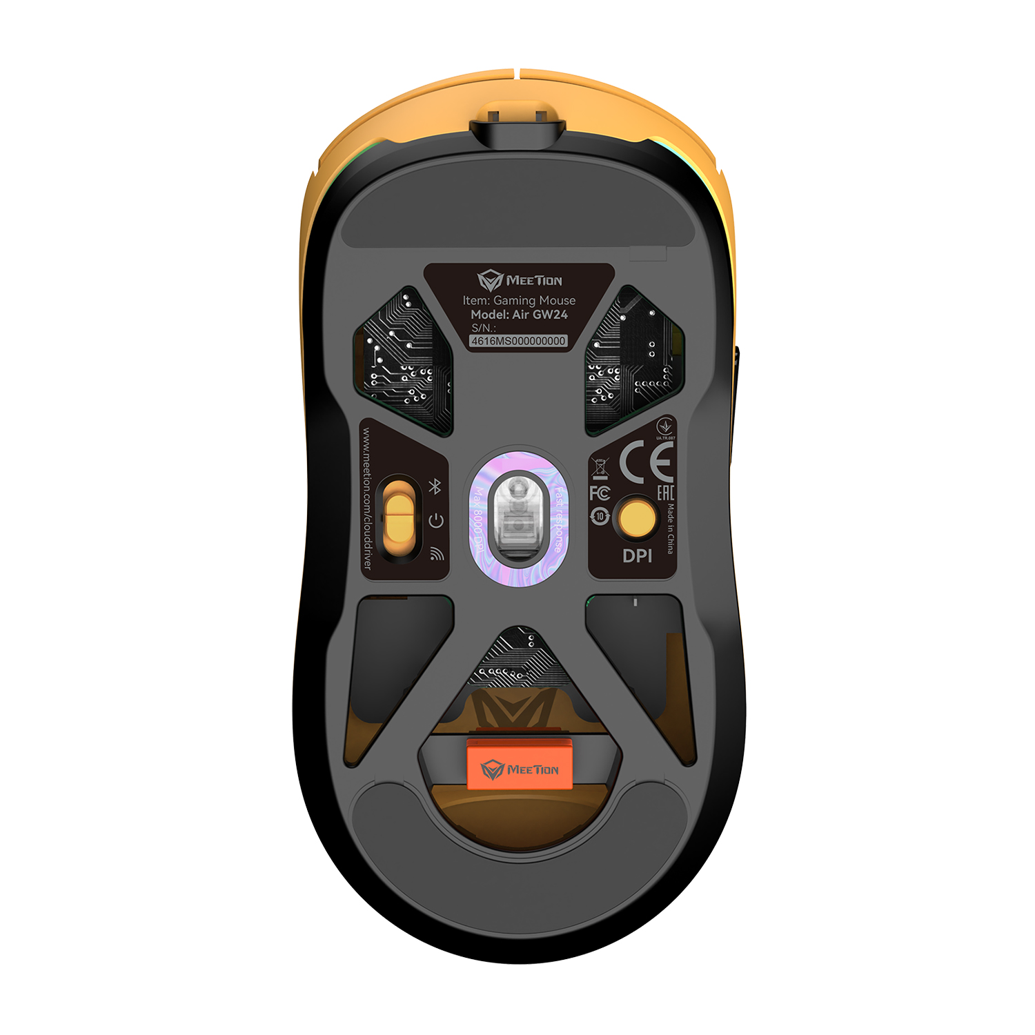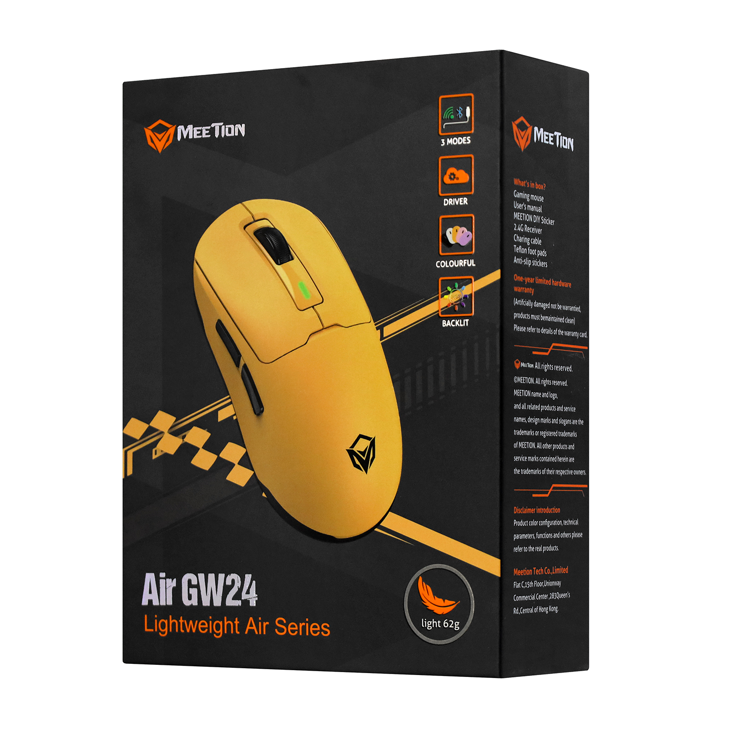 Mouse Meetion Air GW24, Wireless, 8000DPI, 600mAh, 5 Button, USB-С, 2.4 GHz/BT Lemon Yellow