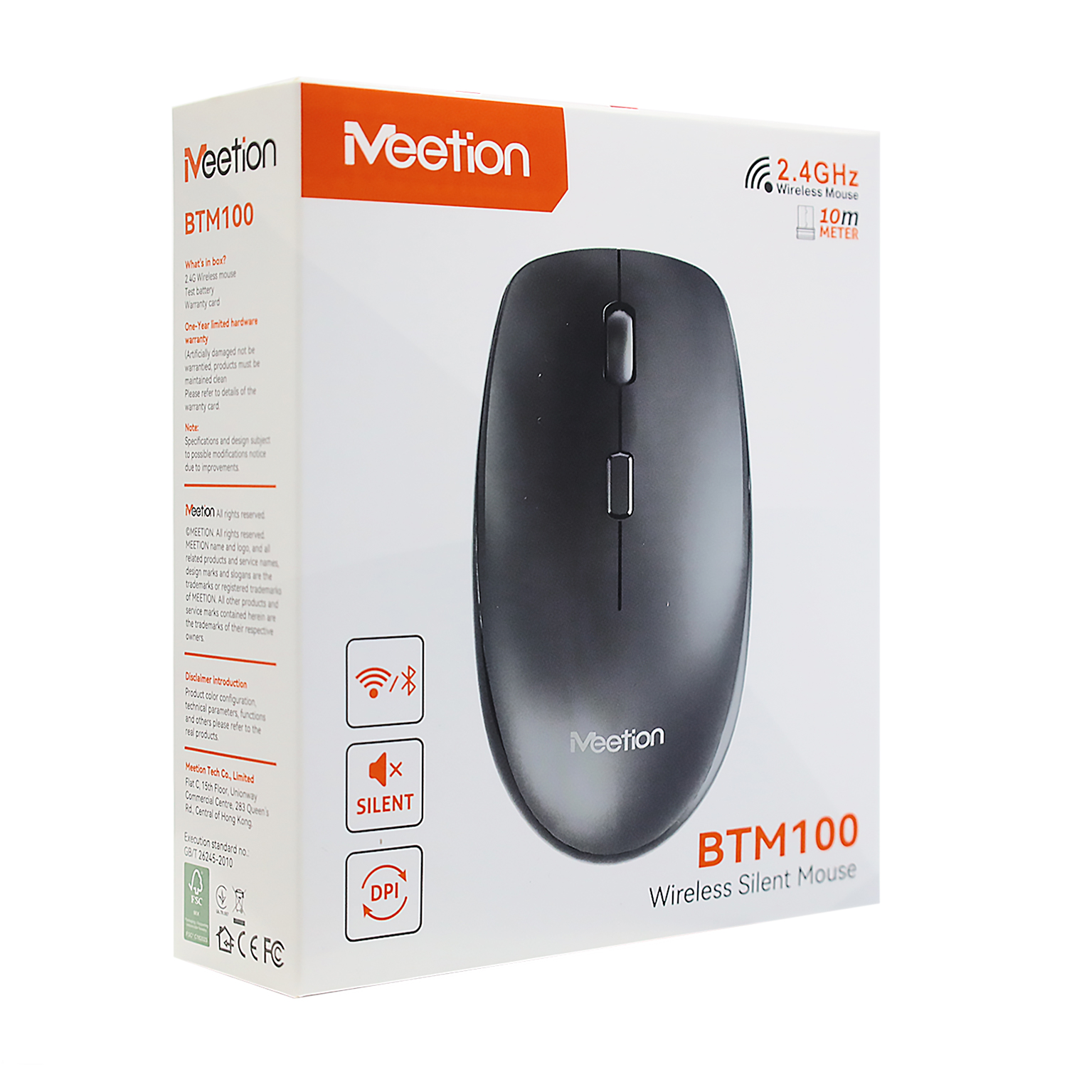 Mouse Meetion BTM100, Wireless, optical, 3200DPI, 4 Button, 1xAA, USB, 2.4 GHz/BT,Steel Gray