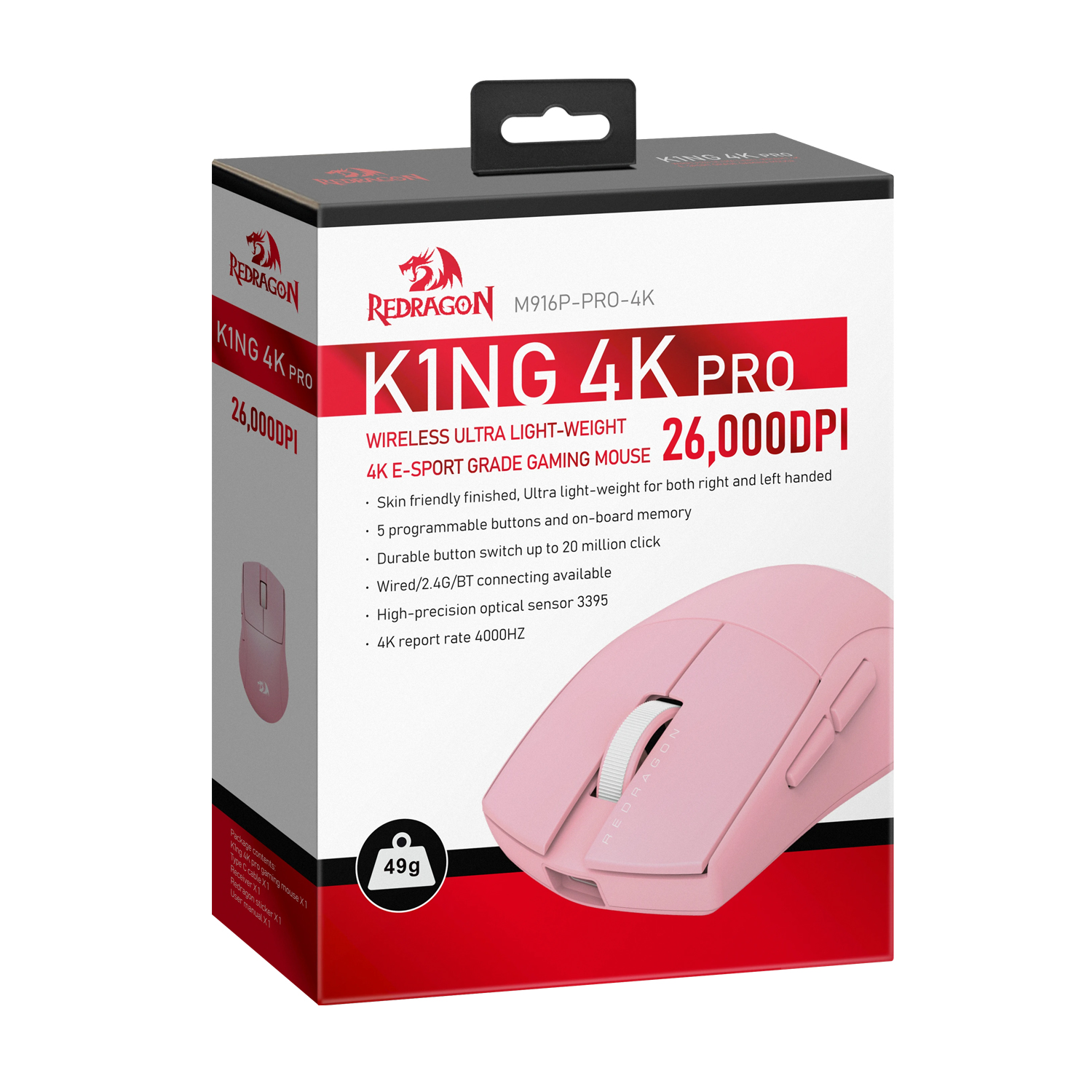 Мышь Redragon K1ng 4K Pro, USB, (72211) Mouse Optical 100-26000 dpi, 2,4/BT Pink 72213)