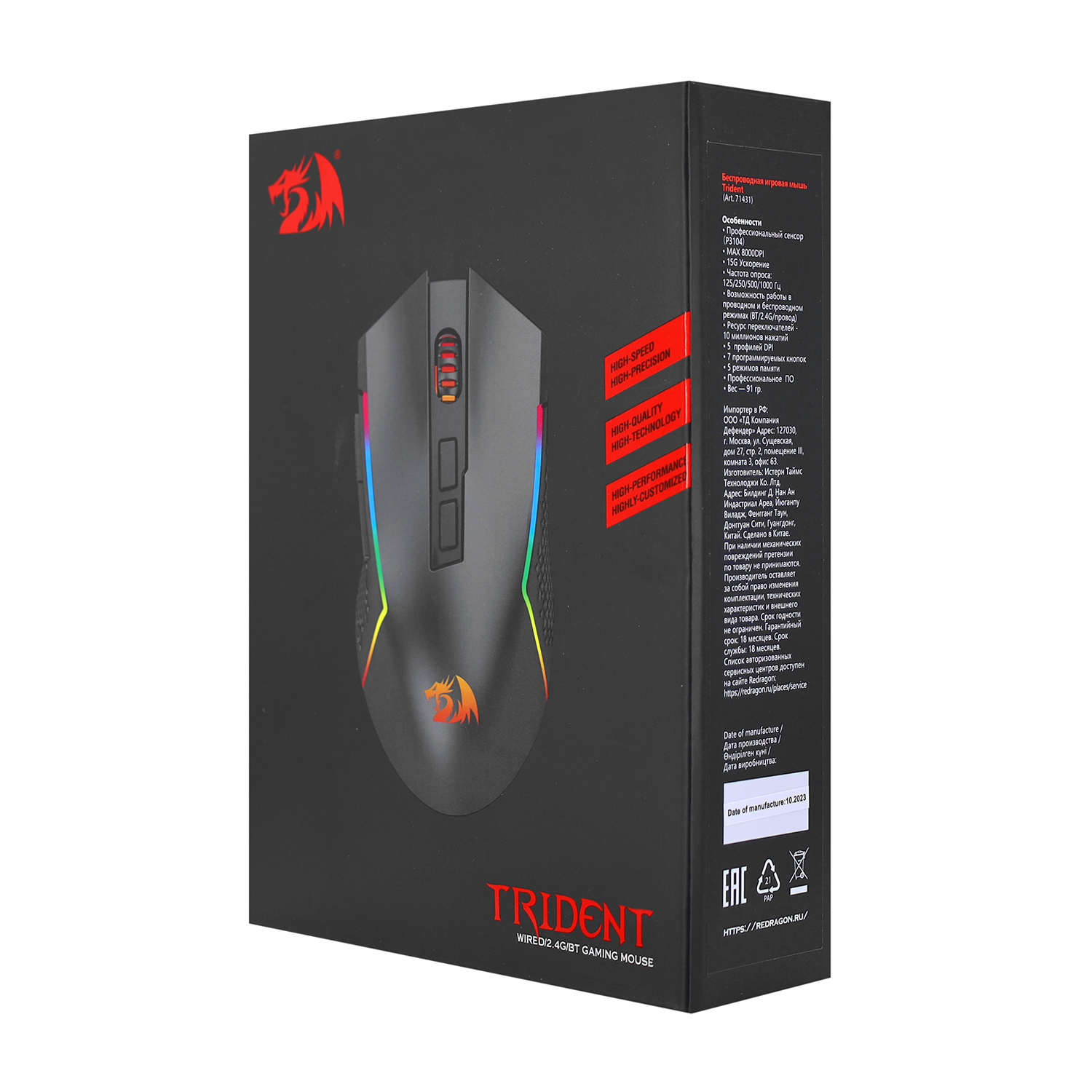 Мышь Redragon Trident, USB, (71431) Mouse Optical 8000 dpi