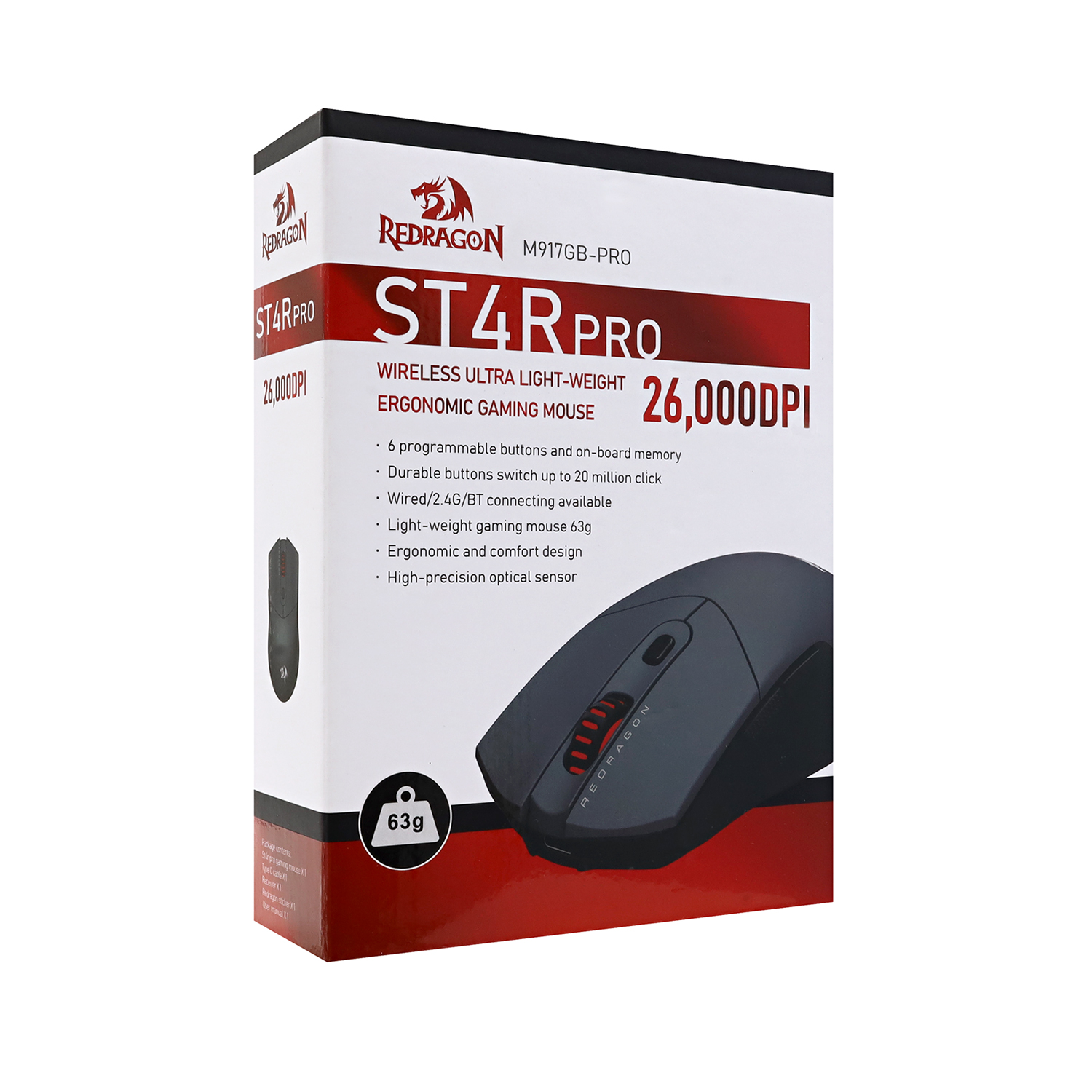 Мышь Redragon ST4r Pro, USB, (72323) Mouse Optical 100-26000 dpi, 2,4/BT Black,