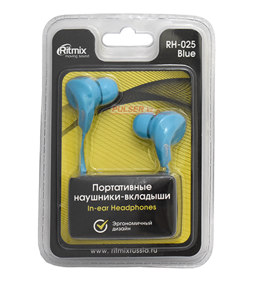 Наушники Ritmix RH-025, Синий Headphone 32 Ohm, 20-20000Hz, 100dB, 1.2m, blue