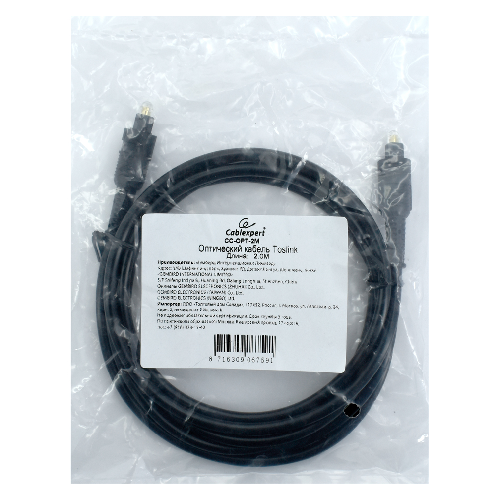 Оптический аудиокабель Cablexpert CC-OPT-2M, 2м Cable Audio, Toslink Optic Cable, 2m, black