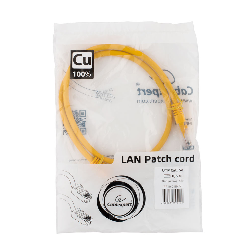 Патч-корд Cablexpert PP10-0.5M/Y, желтый Cable Patch cord UTP 5e-Cat 0.5 m
